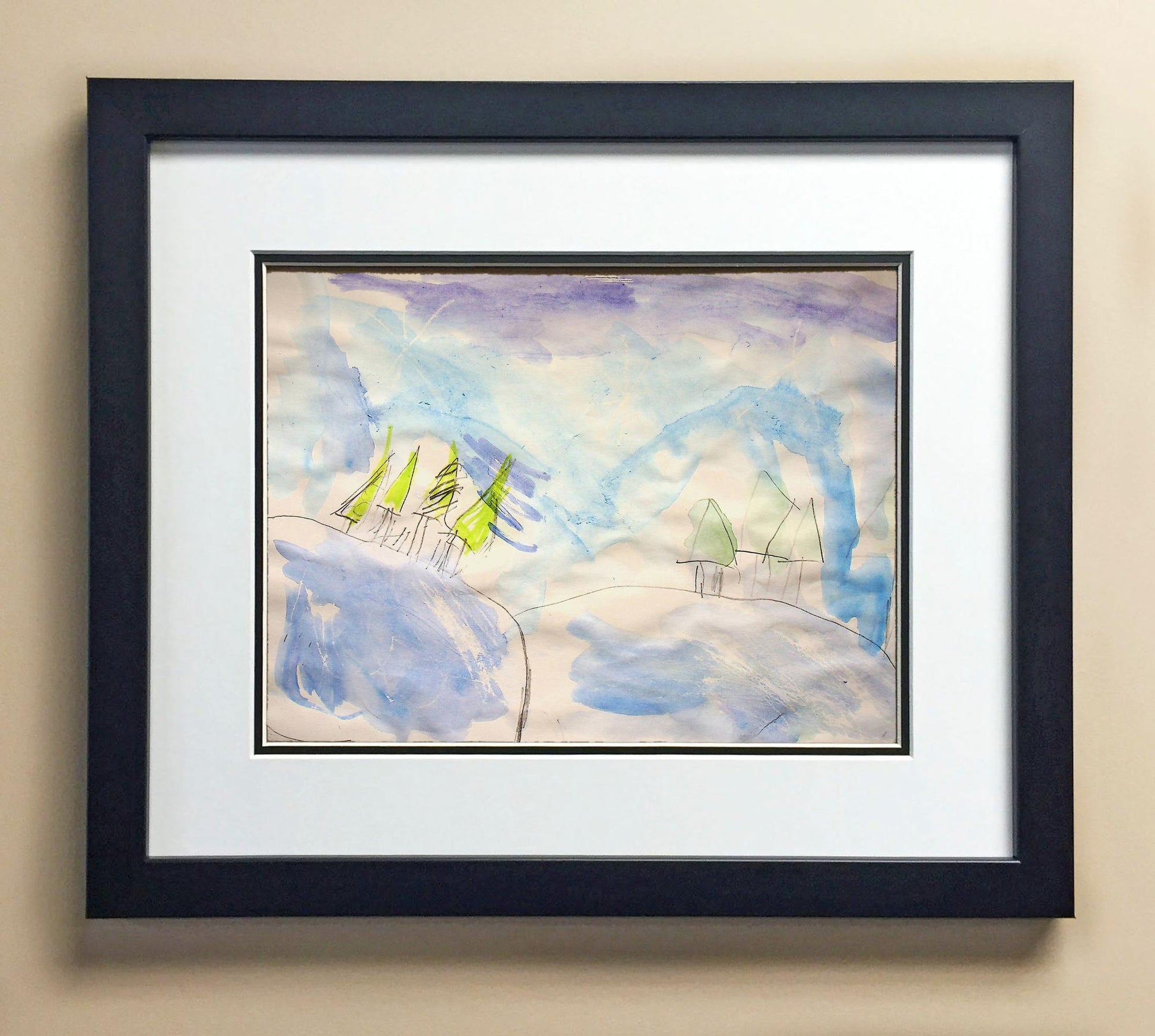 Included with the purchase is the Students Artwork, Frame, double matboard, shatter proof plexiglass, and a ready to hang backerboard with turnbuttons