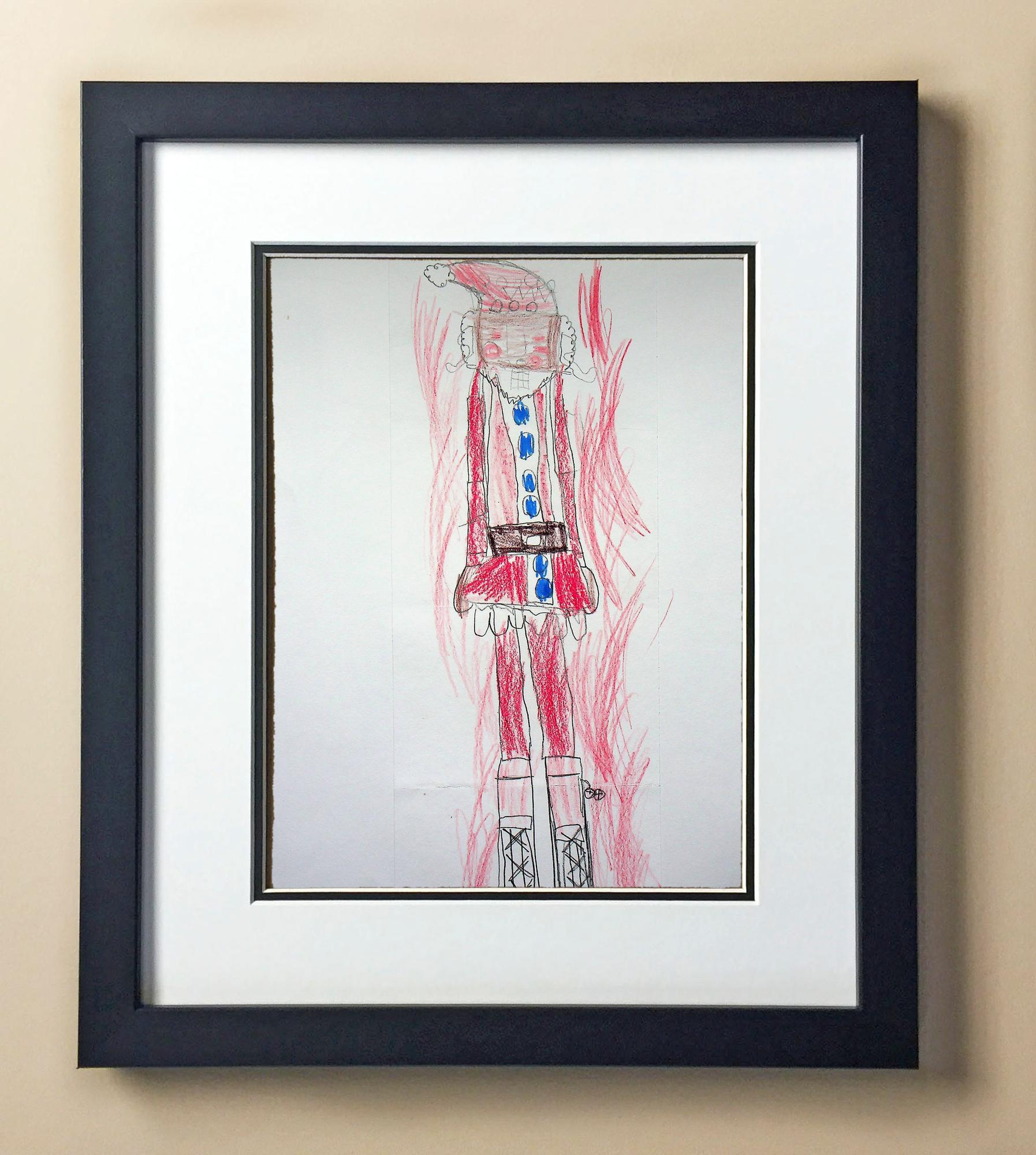 Included with the purchase is the Students Artwork, Frame, double matboard, shatter proof plexiglass, and a ready to hang backerboard with turnbuttons