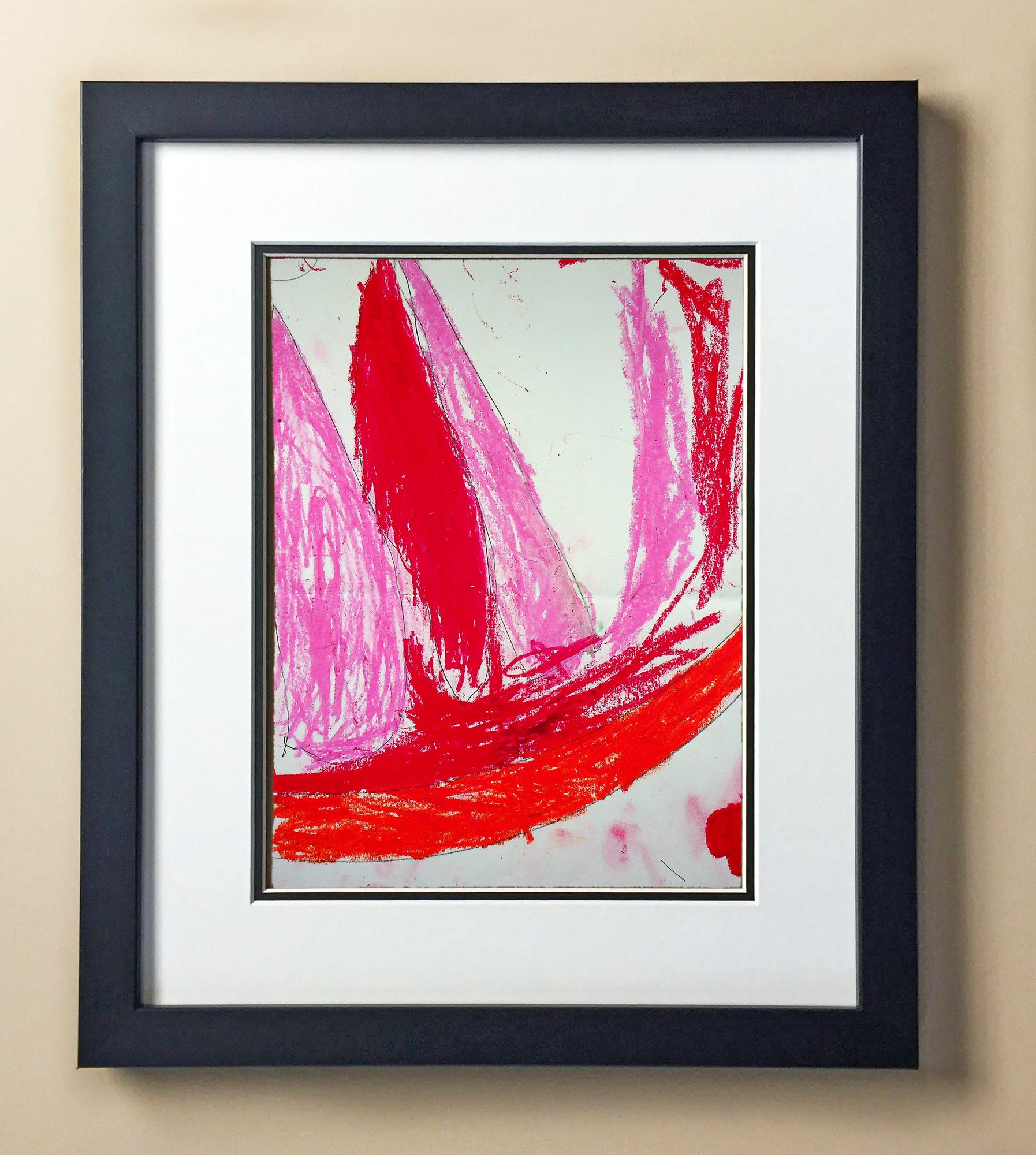 Included with the purchase is the Students Artwork, Frame, double matboard, shatter proof plexiglass, and a ready to hang backerboard with turnbuttons