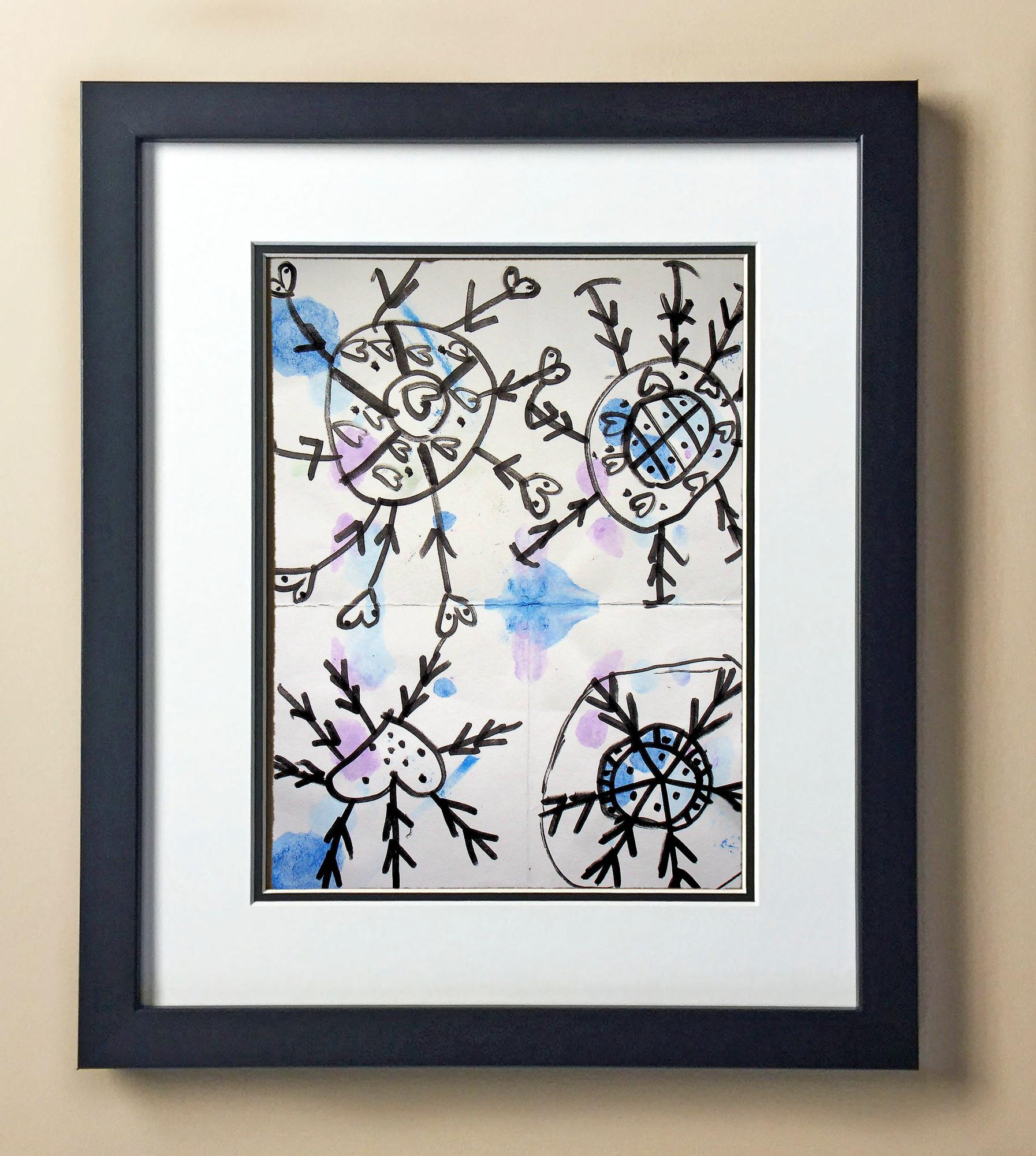 Included with the purchase is the Students Artwork, Frame, double matboard, shatter proof plexiglass, and a ready to hang backerboard with turnbuttons