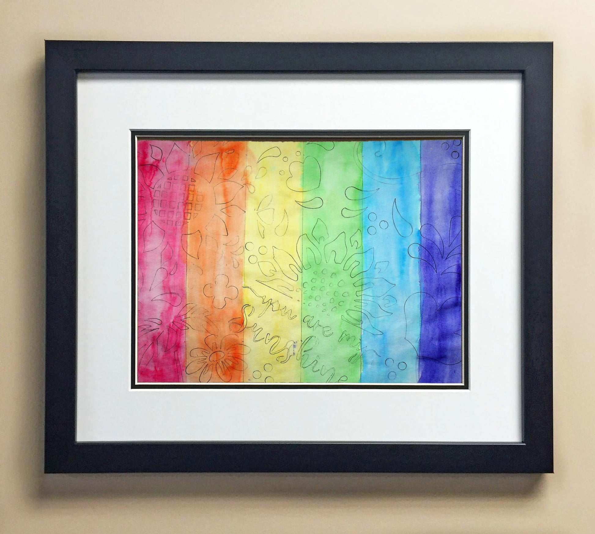 Included with the purchase is the Students Artwork, Frame, double matboard, shatter proof plexiglass, and a ready to hang backerboard with turnbuttons