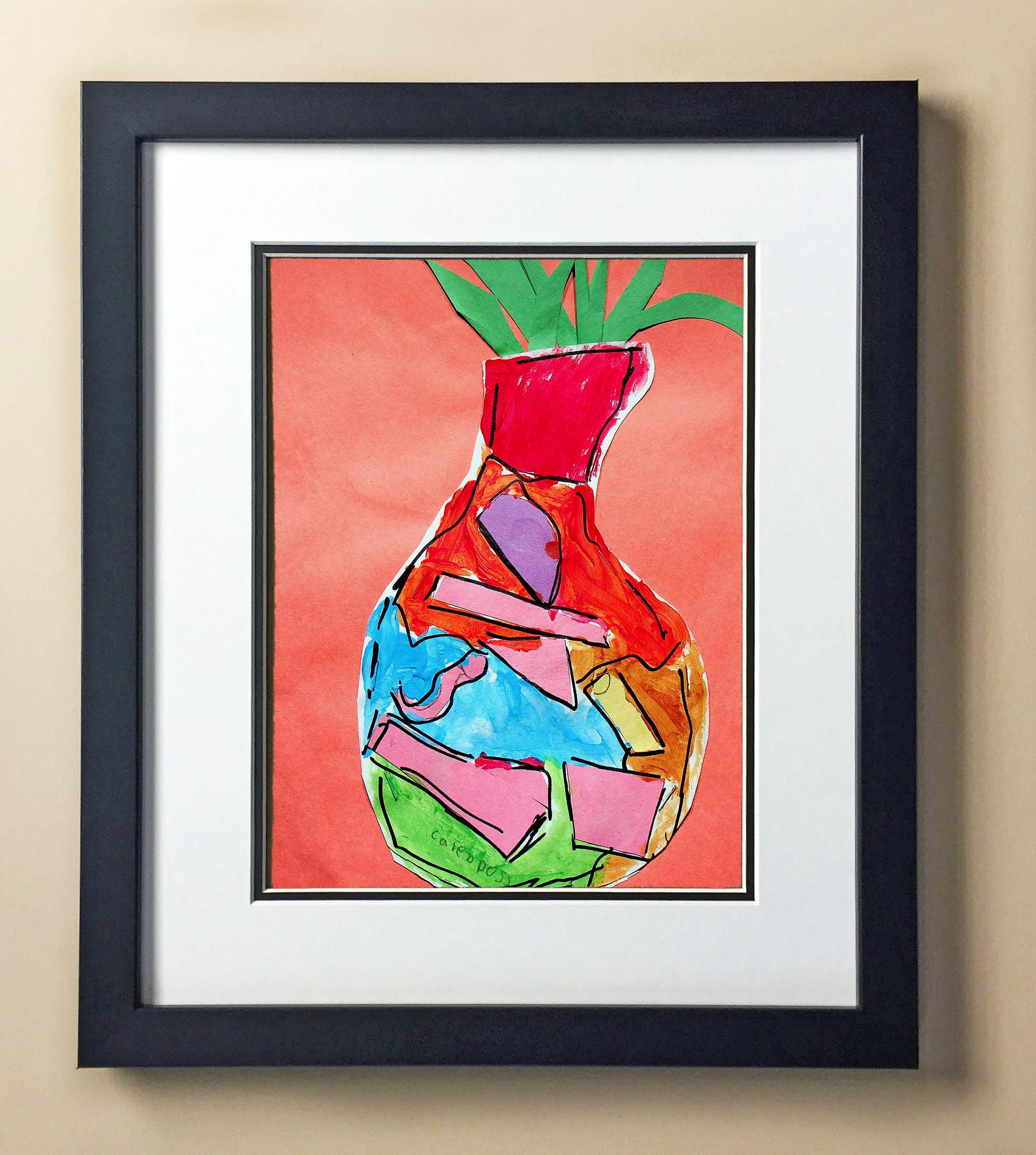 Included with the purchase is the Students Artwork, Frame, double matboard, shatter proof plexiglass, and a ready to hang backerboard with turnbuttons