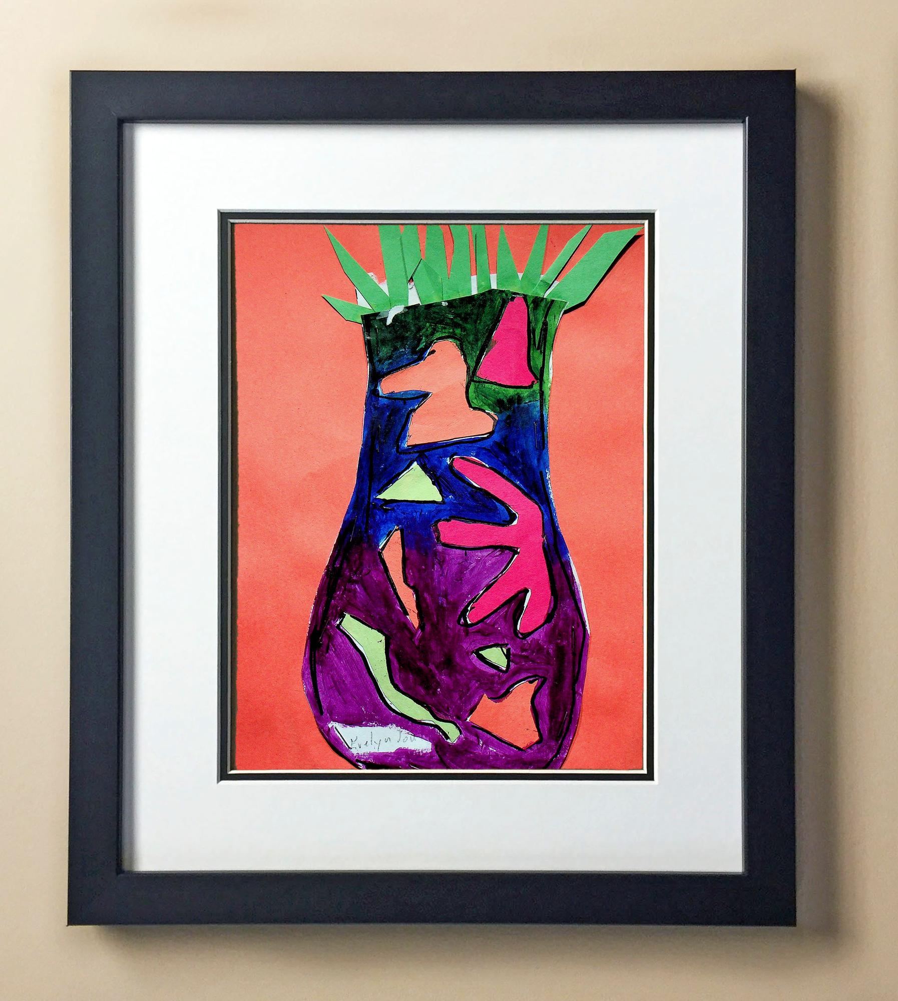 Included with the purchase is the Students Artwork, Frame, double matboard, shatter proof plexiglass, and a ready to hang backerboard with turnbuttons