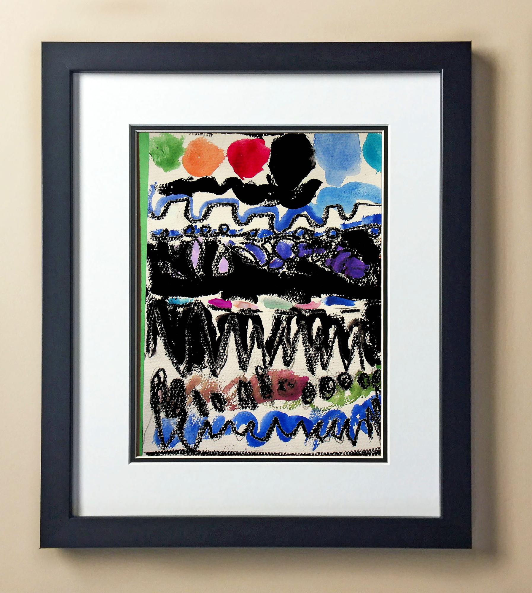 Included with the purchase is the Students Artwork, Frame, double matboard, shatter proof plexiglass, and a ready to hang backerboard with turnbuttons
