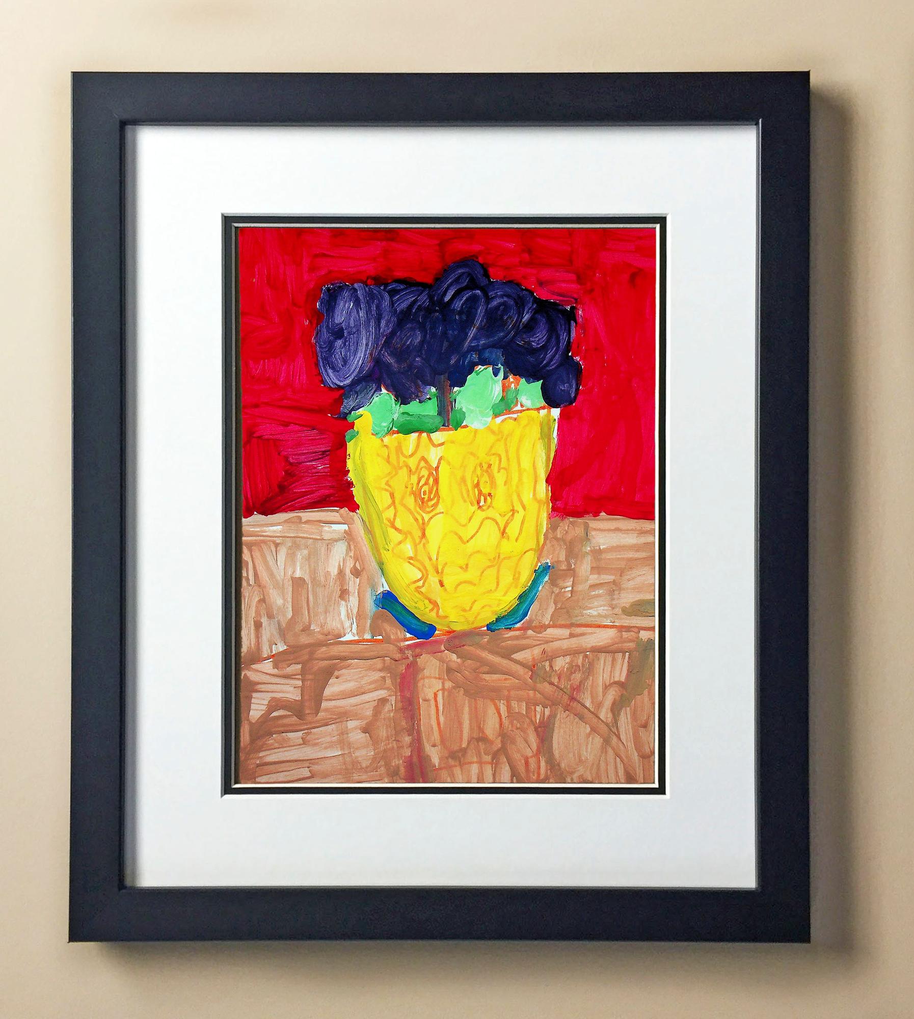 Included with the purchase is the Students Artwork, Frame, double matboard, shatter proof plexiglass, and a ready to hang backerboard with turnbuttons