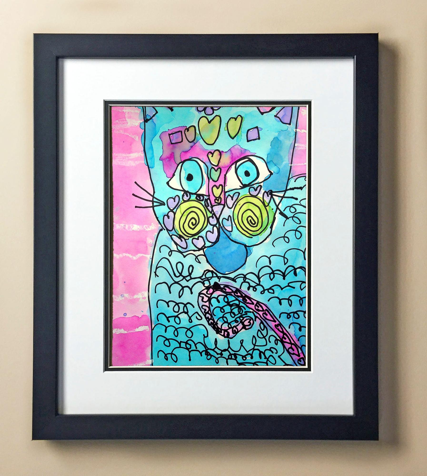 Included with the purchase is the Students Artwork, Frame, double matboard, shatter proof plexiglass, and a ready to hang backerboard with turnbuttons