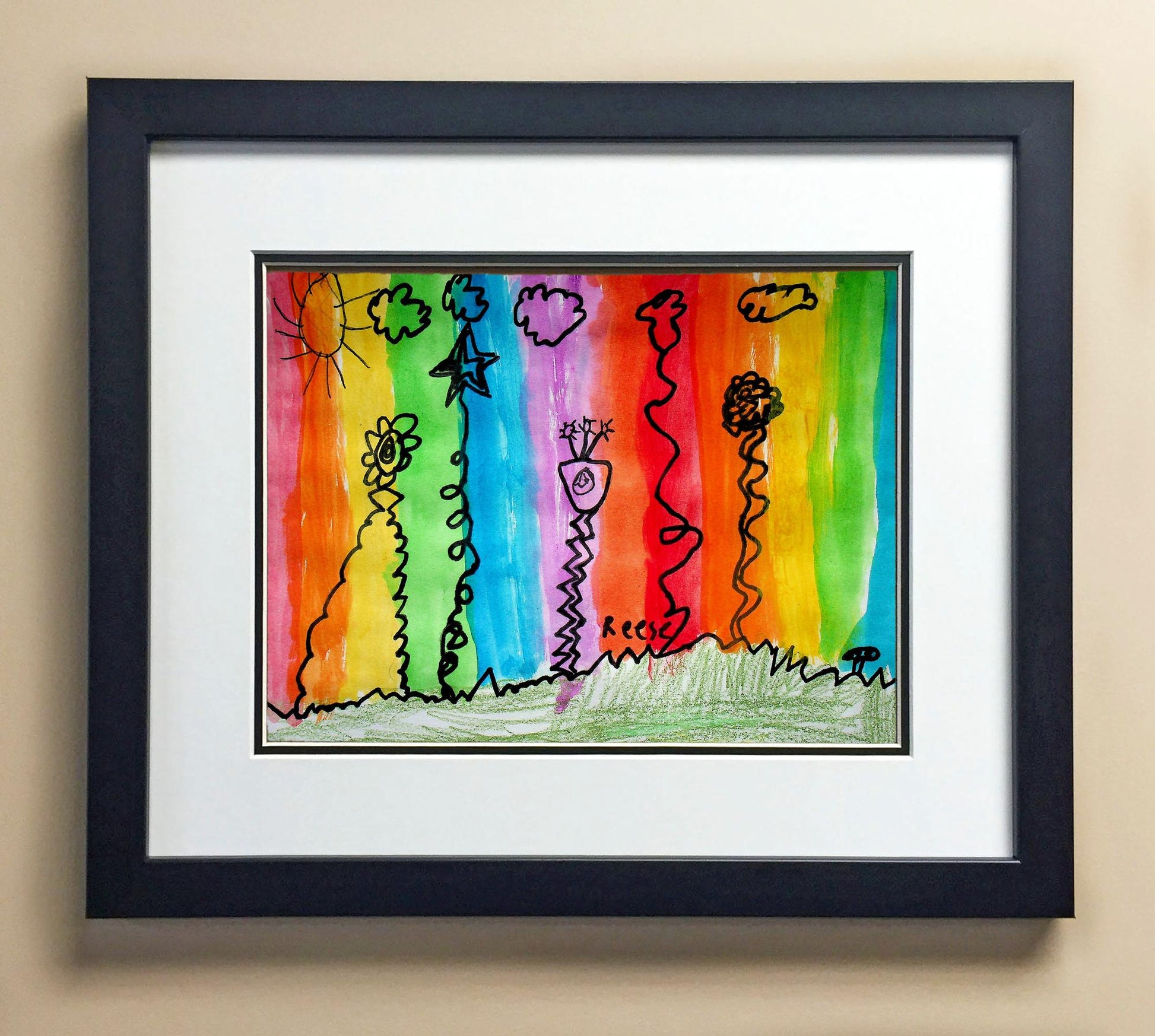 Included with the purchase is the Students Artwork, Frame, double matboard, shatter proof plexiglass, and a ready to hang backerboard with turnbuttons