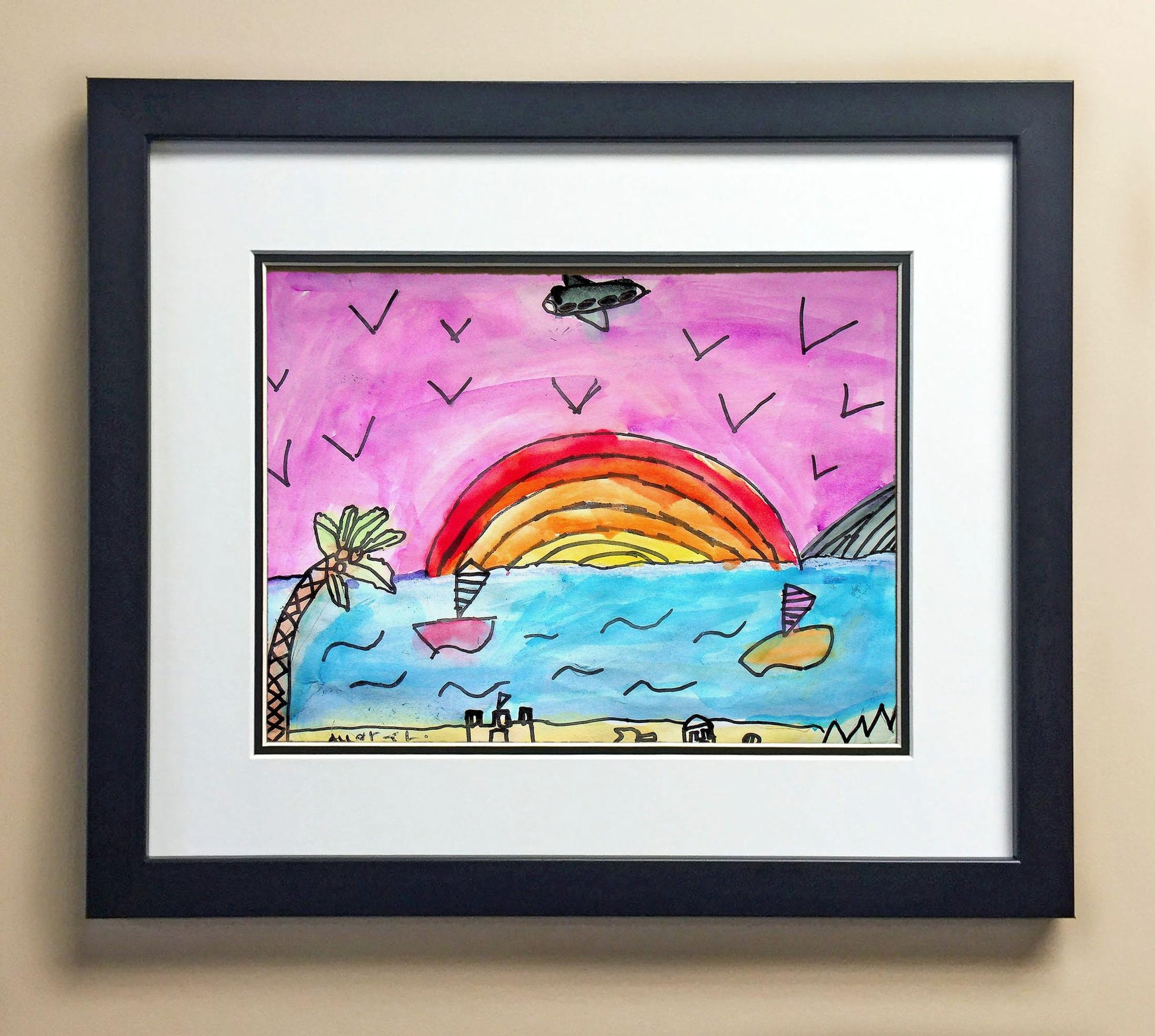 Included with the purchase is the Students Artwork, Frame, double matboard, shatter proof plexiglass, and a ready to hang backerboard with turnbuttons