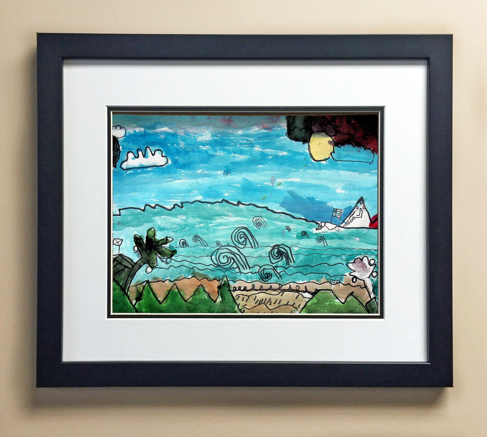 Included with the purchase is the Students Artwork, Frame, double matboard, shatter proof plexiglass, and a ready to hang backerboard with turnbuttons
