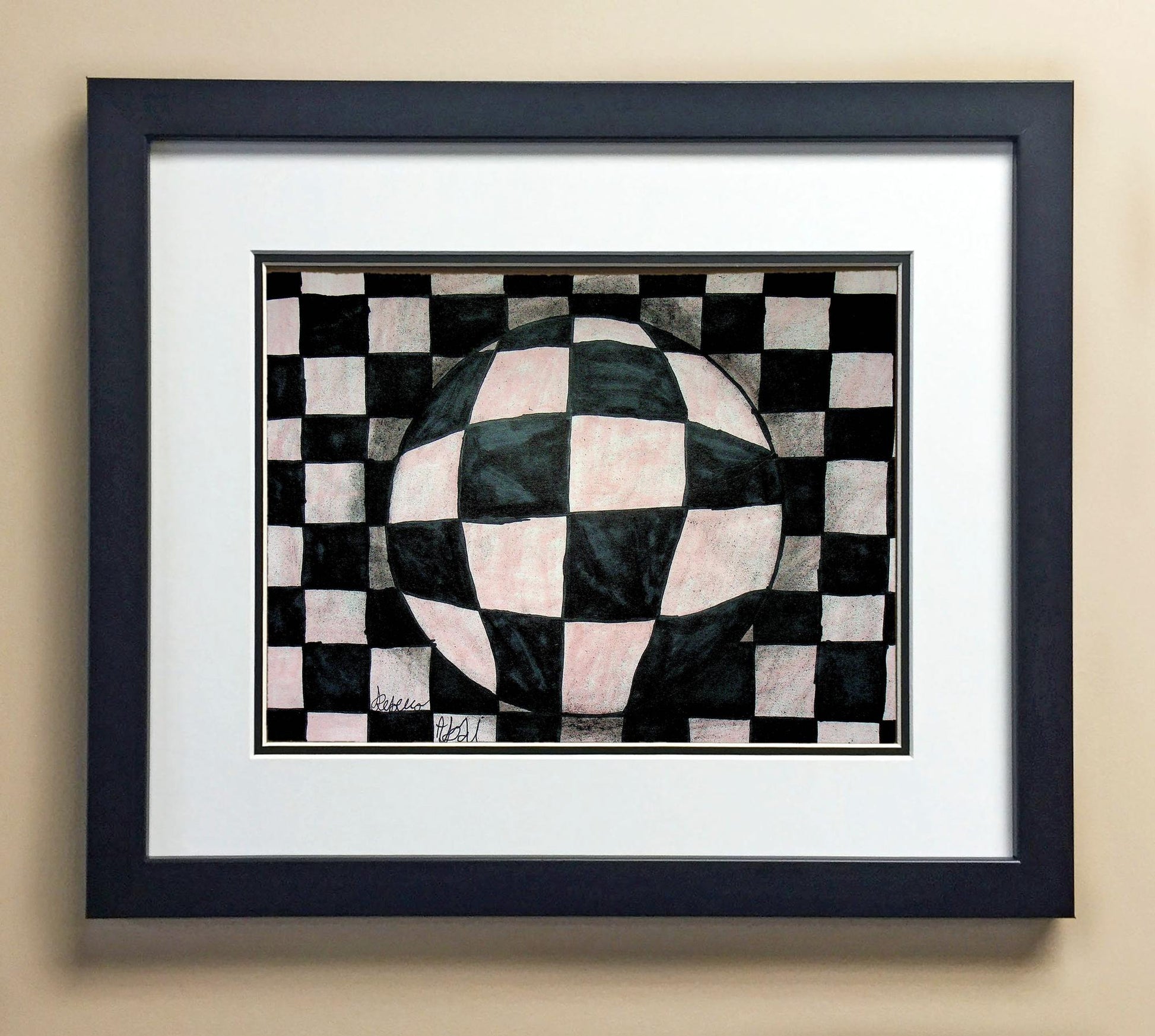 Included with the purchase is the Students Artwork, Frame, double matboard, shatter proof plexiglass, and a ready to hang backerboard with turnbuttons