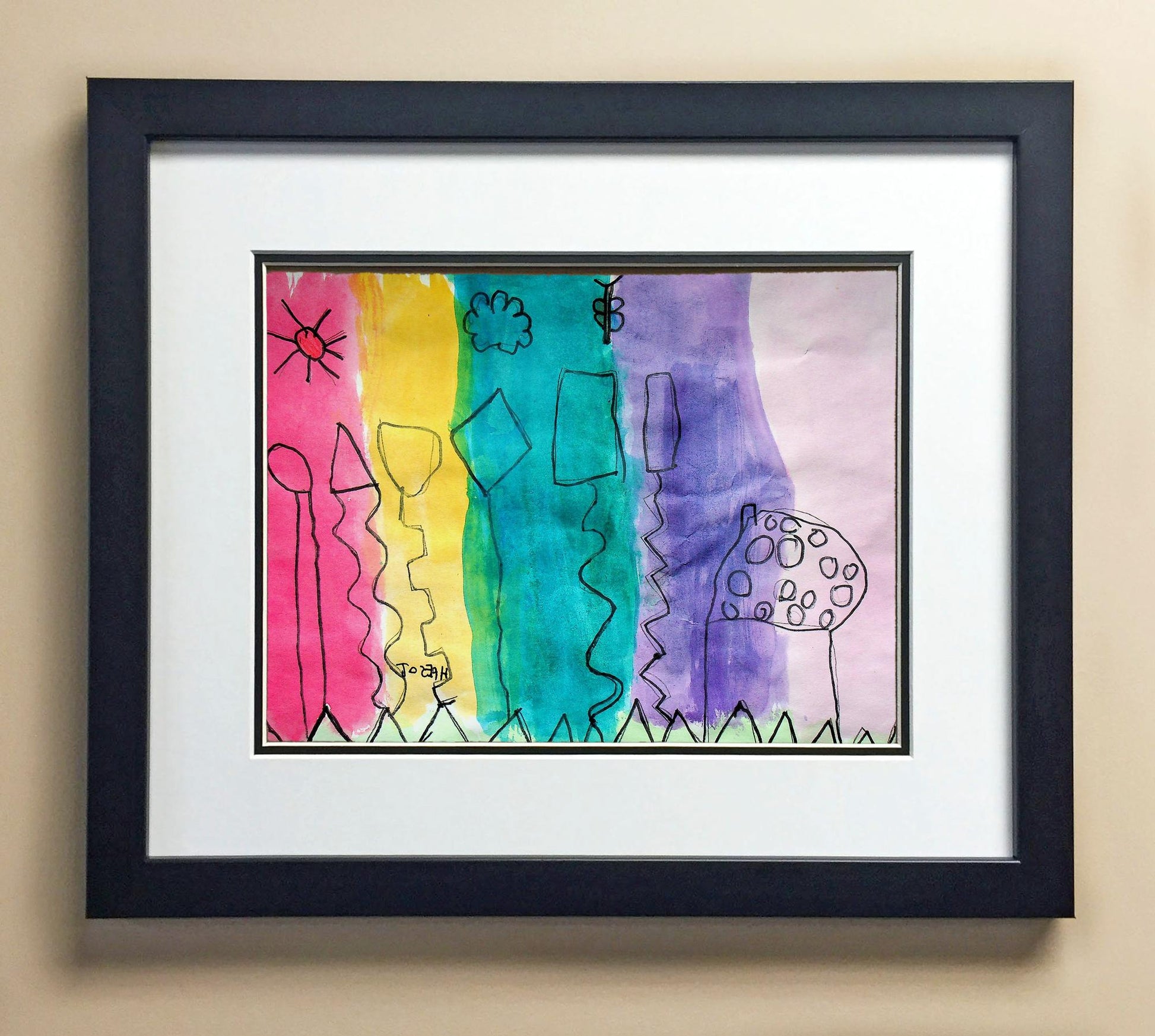 Included with the purchase is the Students Artwork, Frame, double matboard, shatter proof plexiglass, and a ready to hang backerboard with turnbuttons