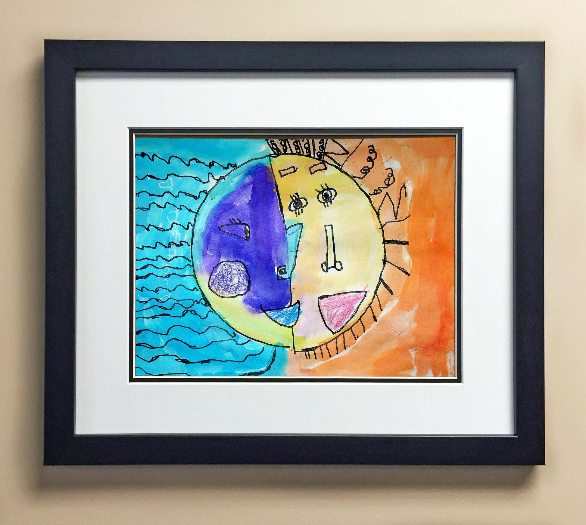 Included with the purchase is the Students Artwork, Frame, double matboard, shatter proof plexiglass, and a ready to hang backerboard with turnbuttons
