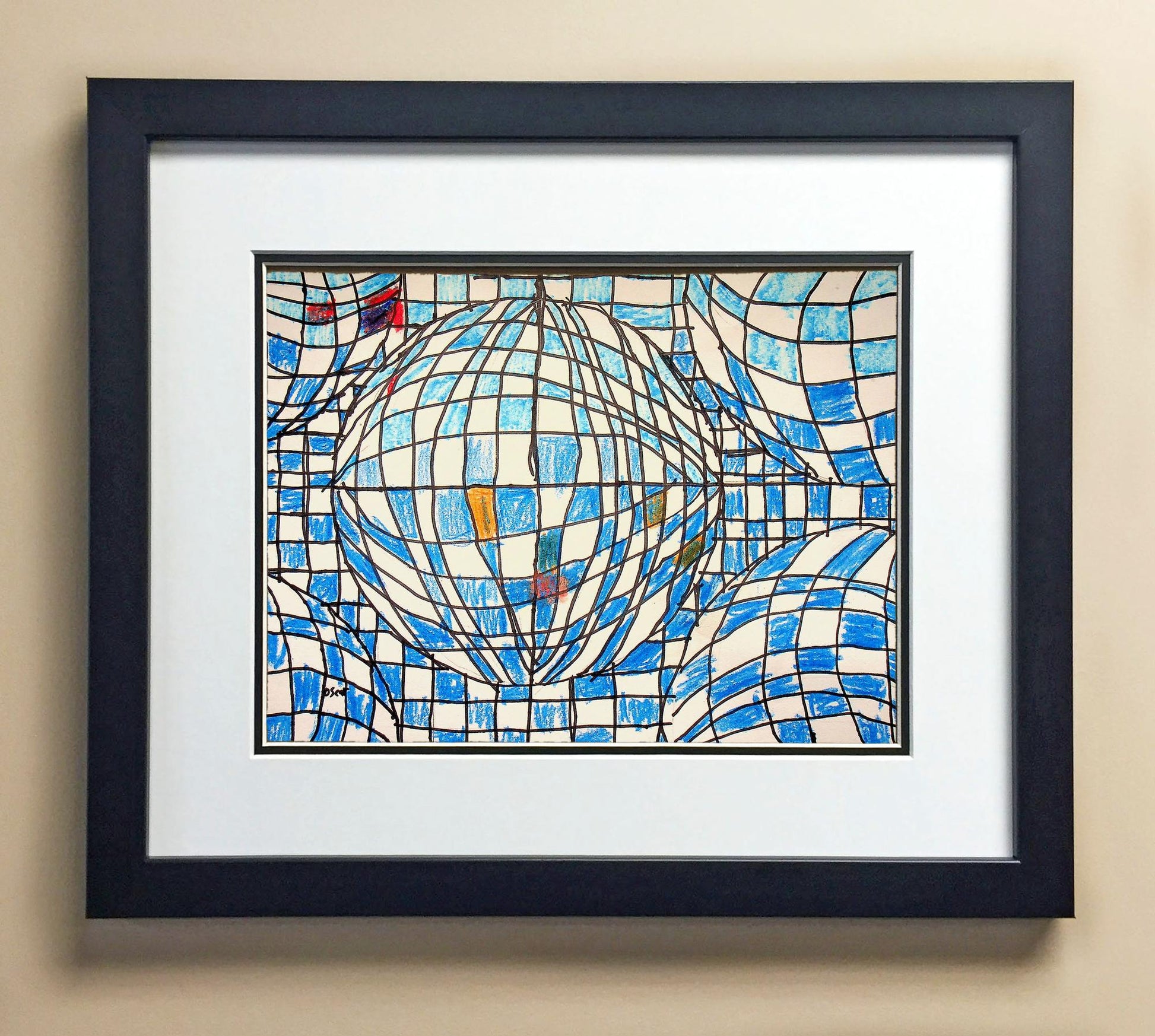 Included with the purchase is the Students Artwork, Frame, double matboard, shatter proof plexiglass, and a ready to hang backerboard with turnbuttons