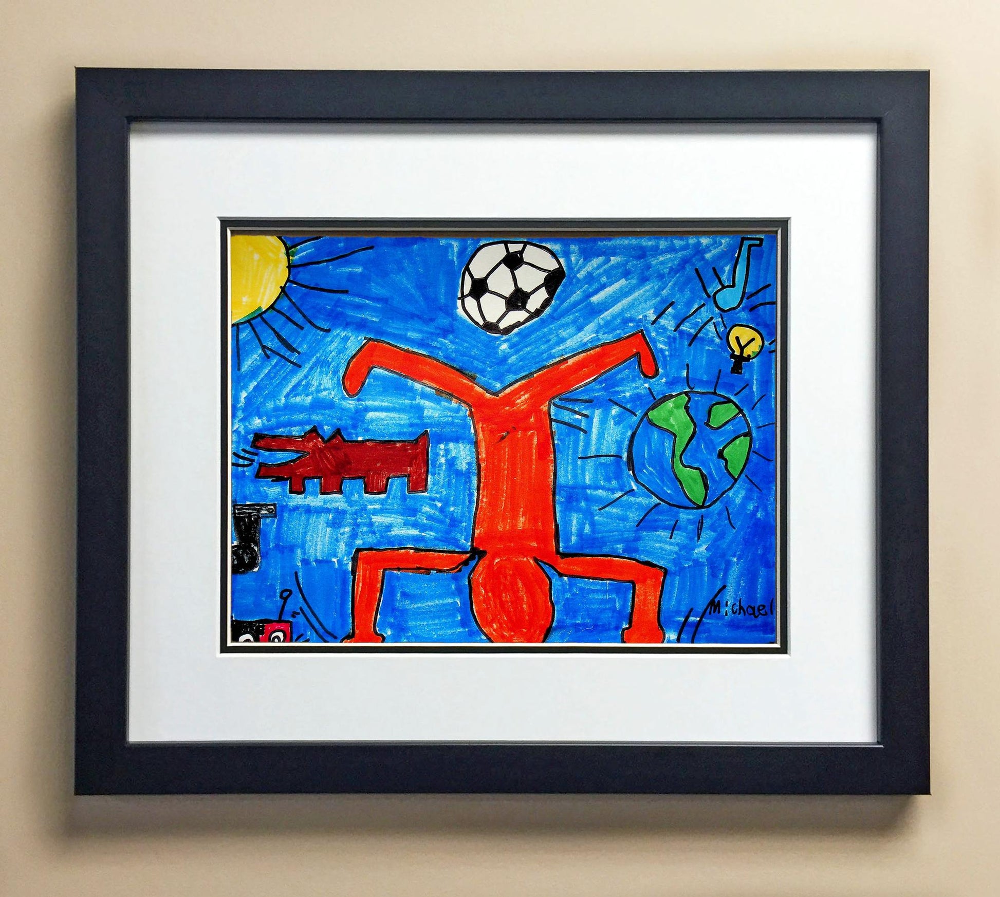 Included with the purchase is the Students Artwork, Frame, double matboard, shatter proof plexiglass, and a ready to hang backerboard with turnbuttons