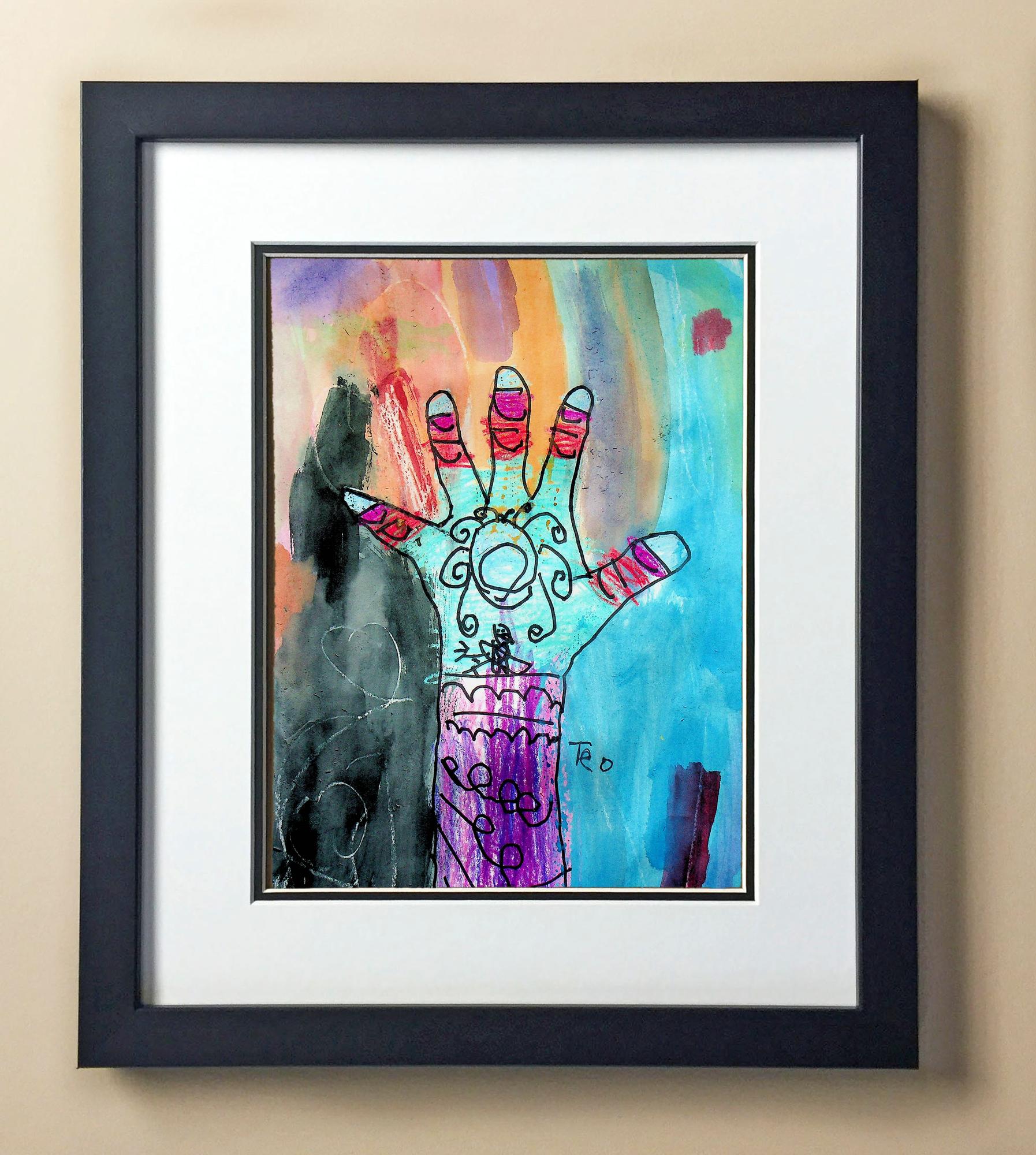 Included with the purchase is the Students Artwork, Frame, double matboard, shatter proof plexiglass, and a ready to hang backerboard with turnbuttons