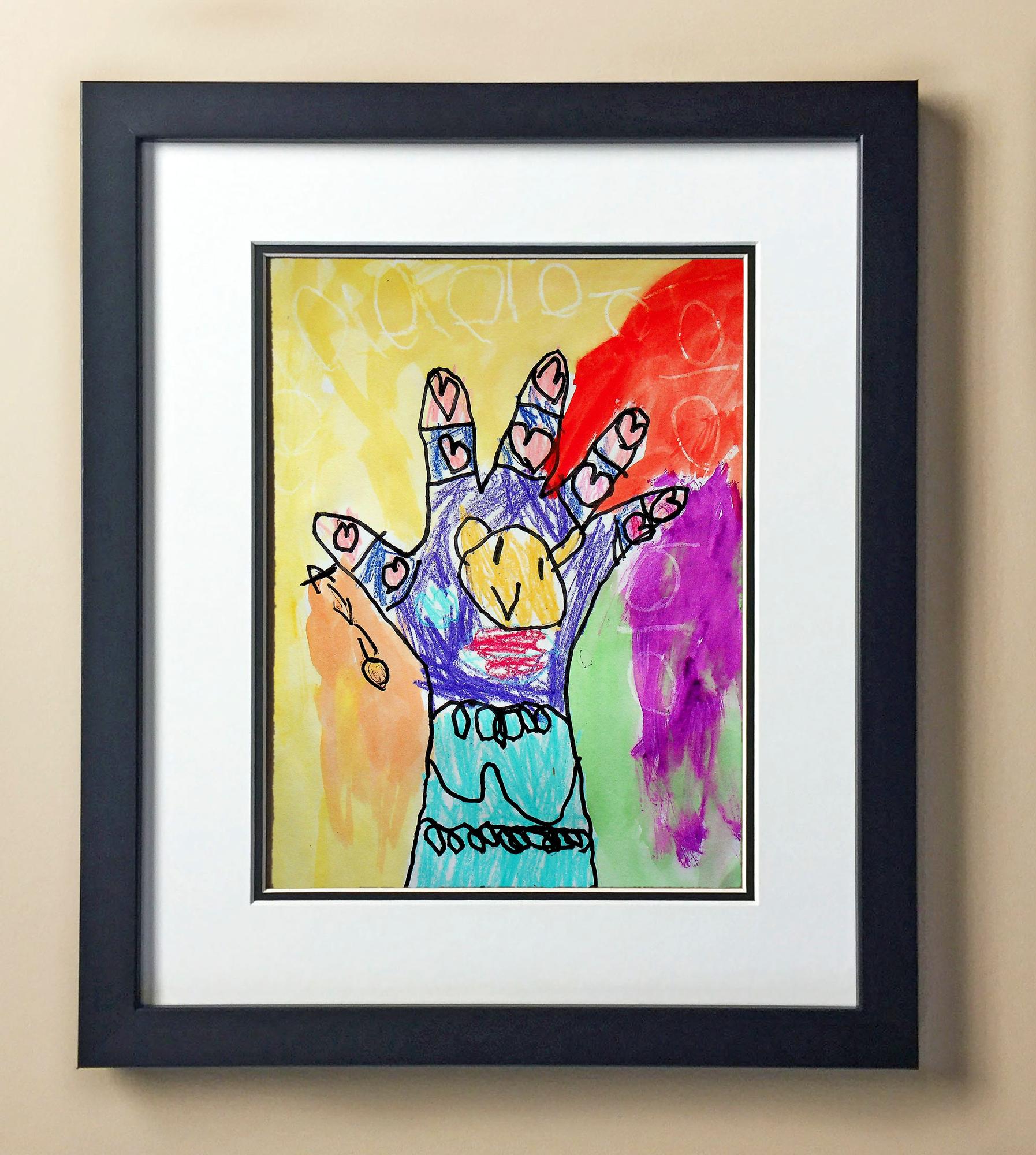 Included with the purchase is the Students Artwork, Frame, double matboard, shatter proof plexiglass, and a ready to hang backerboard with turnbuttons