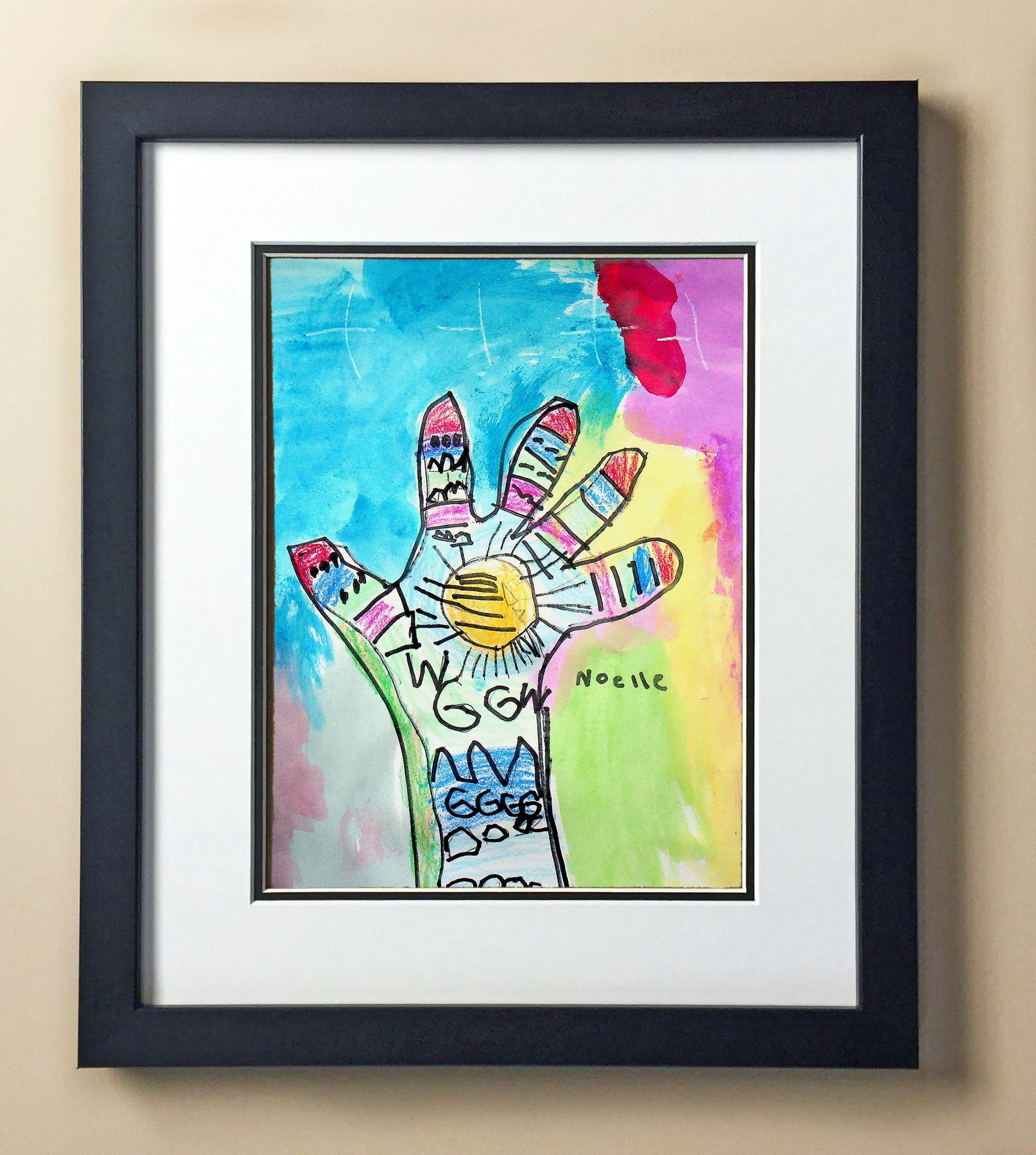 Included with the purchase is the Students Artwork, Frame, double matboard, shatter proof plexiglass, and a ready to hang backerboard with turnbuttons