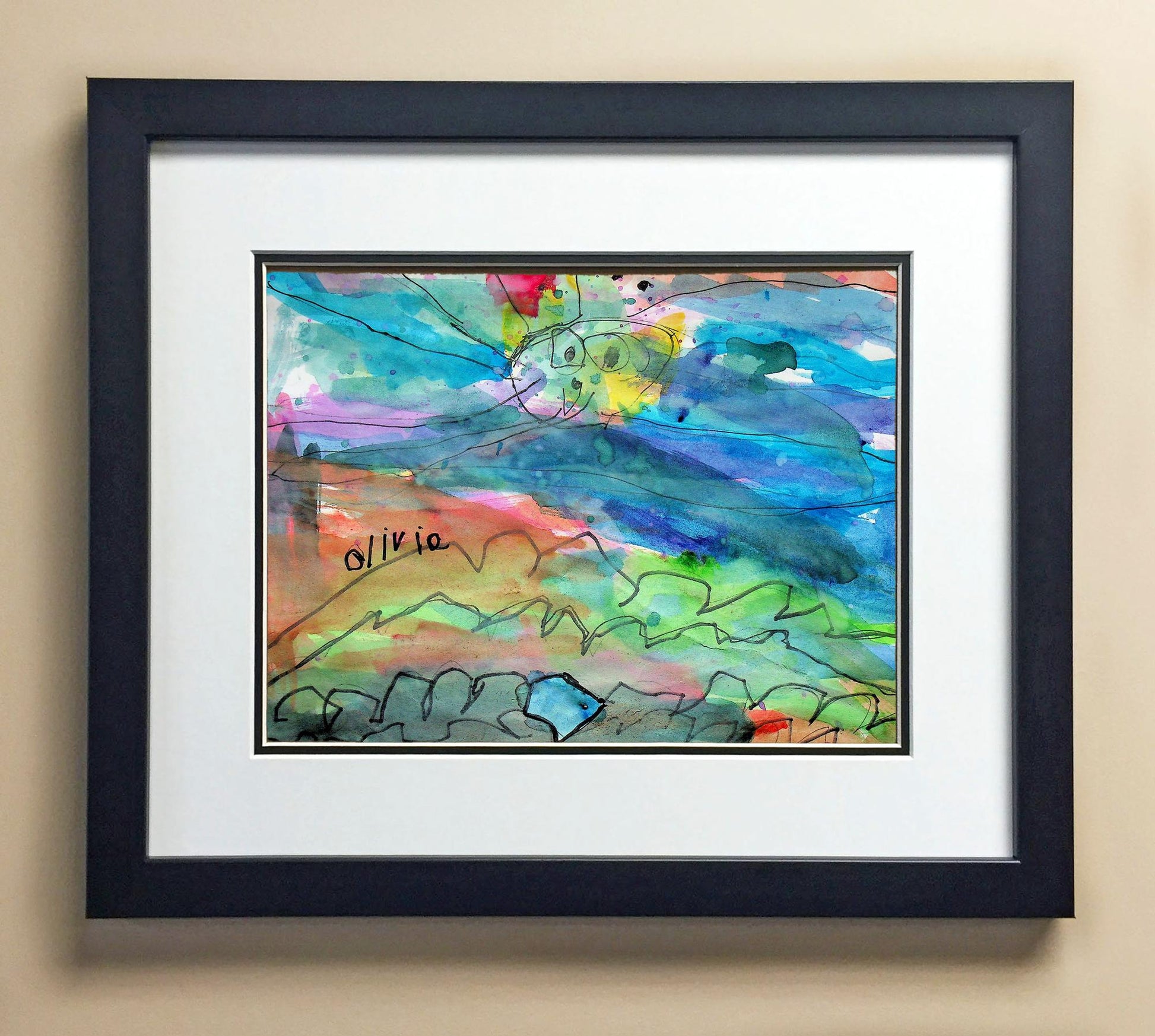 Included with the purchase is the Students Artwork, Frame, double matboard, shatter proof plexiglass, and a ready to hang backerboard with turnbuttons