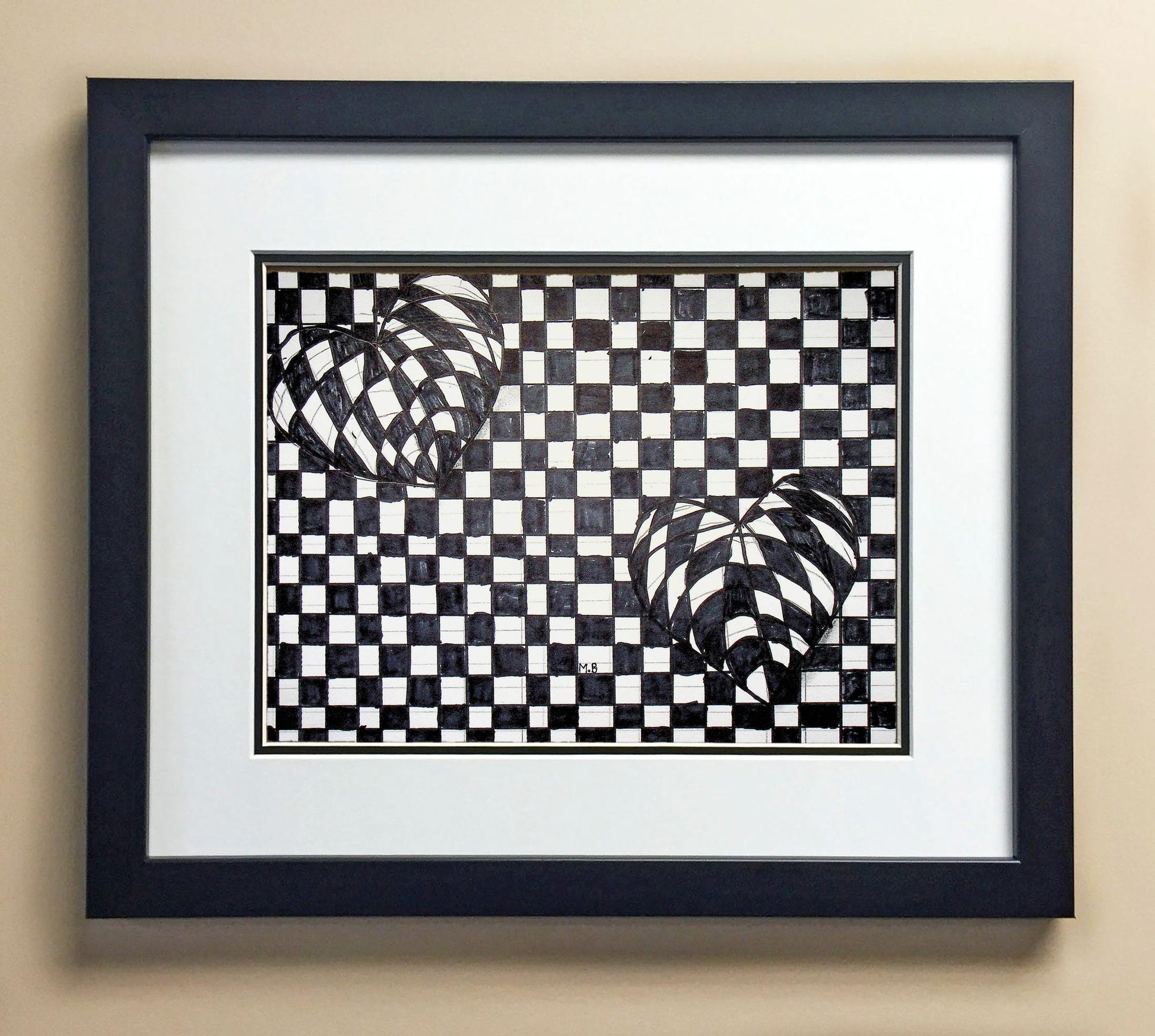 Included with the purchase is the Students Artwork, Frame, double matboard, shatter proof plexiglass, and a ready to hang backerboard with turnbuttons