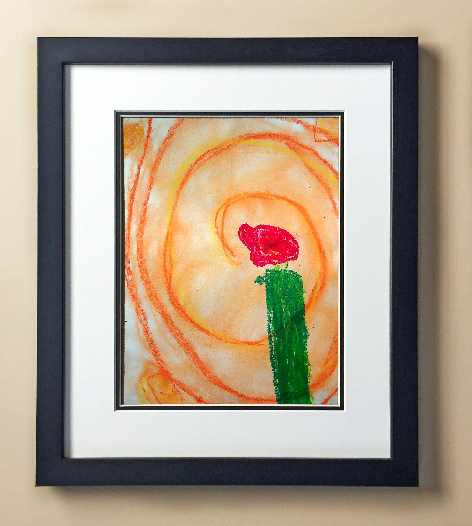 Included with the purchase is the Students Artwork, Frame, double matboard, shatter proof plexiglass, and a ready to hang backerboard with turnbuttons