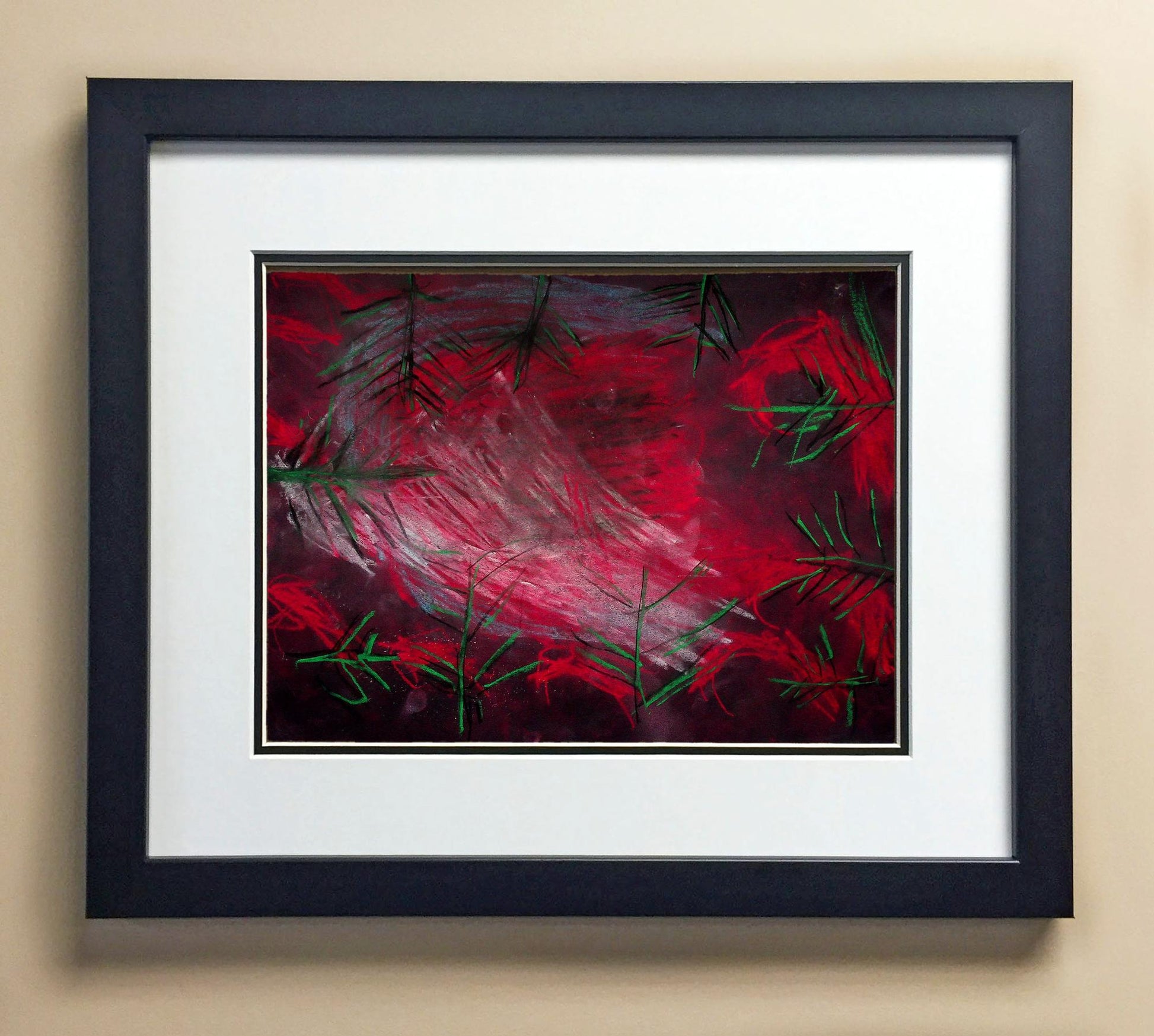 Included with the purchase is the Students Artwork, Frame, double matboard, shatter proof plexiglass, and a ready to hang backerboard with turnbuttons