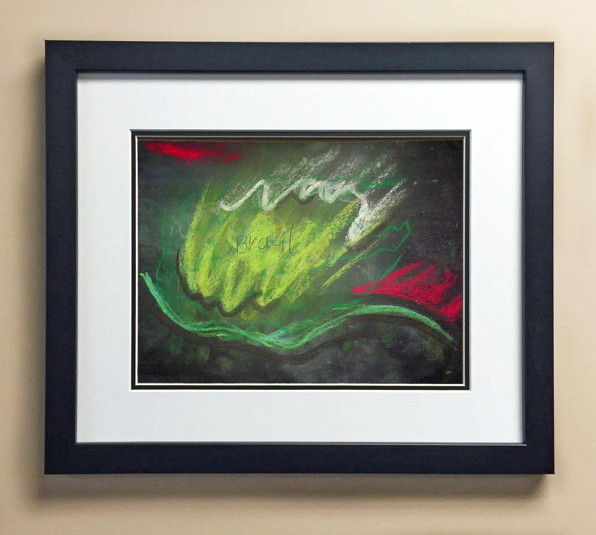 Included with the purchase is the Students Artwork, Frame, double matboard, shatter proof plexiglass, and a ready to hang backerboard with turnbuttons