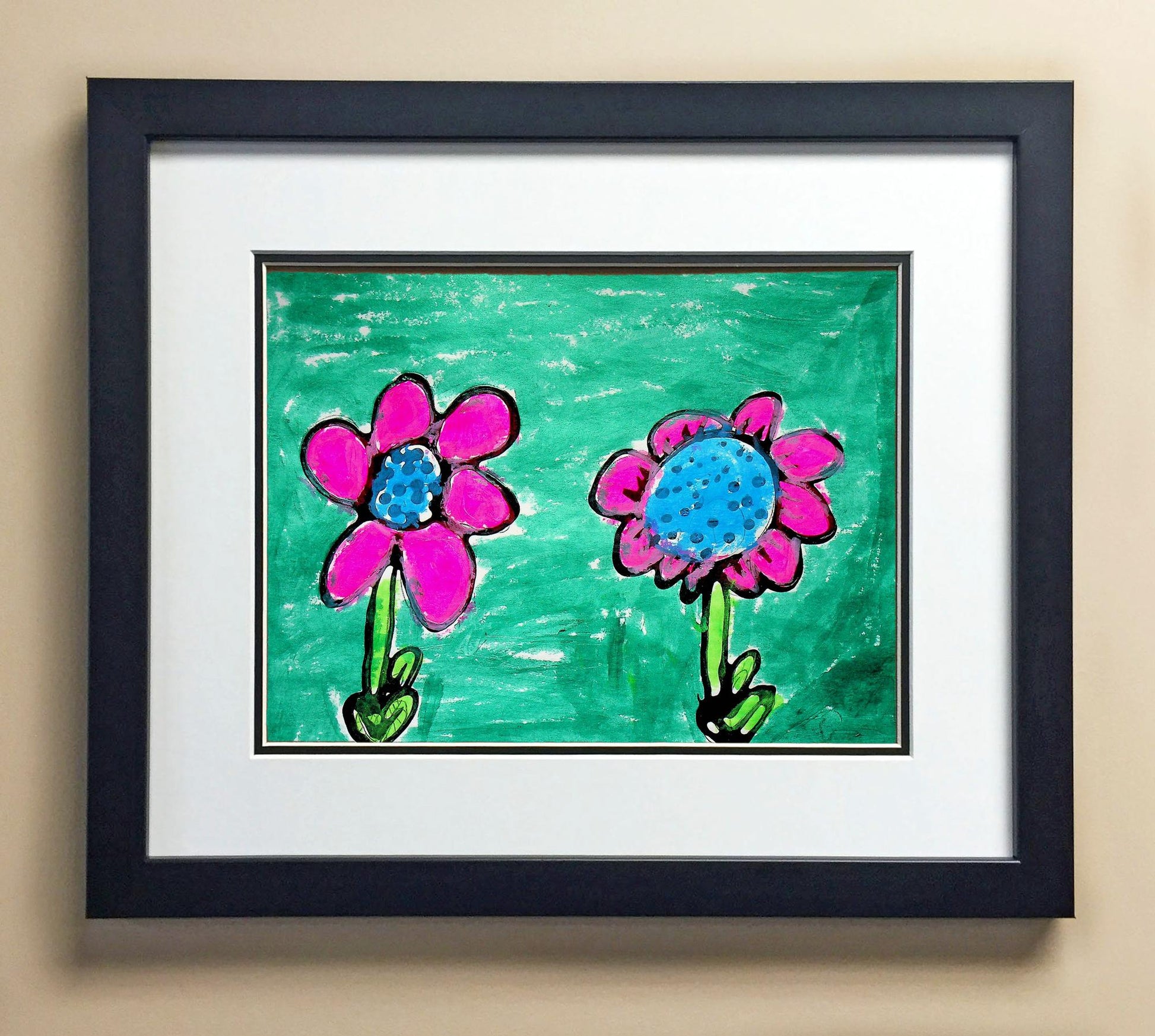 Included with the purchase is the Students Artwork, Frame, double matboard, shatter proof plexiglass, and a ready to hang backerboard with turnbuttons
