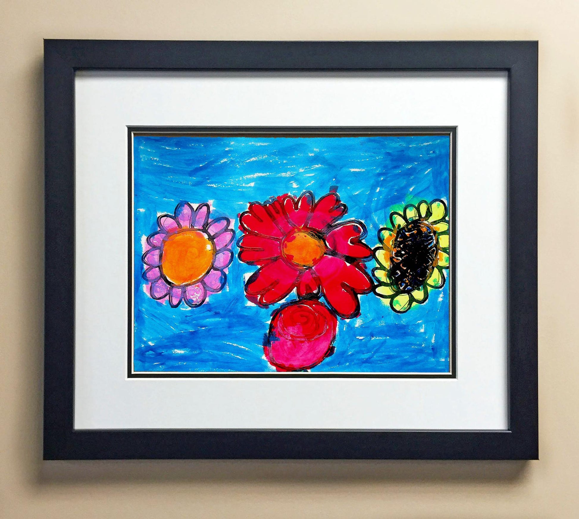 Included with the purchase is the Students Artwork, Frame, double matboard, shatter proof plexiglass, and a ready to hang backerboard with turnbuttons