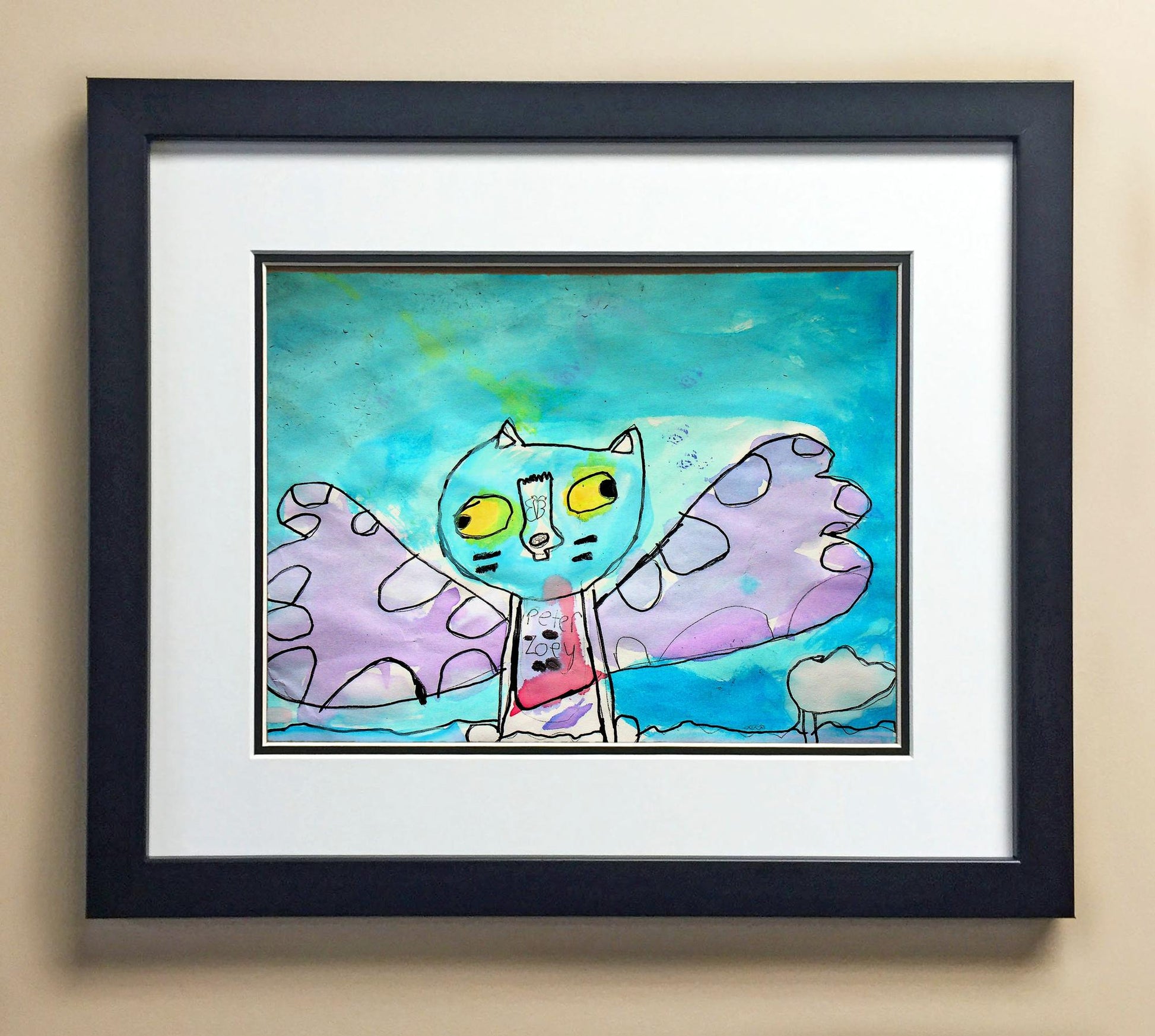 Included with the purchase is the Students Artwork, Frame, double matboard, shatter proof plexiglass, and a ready to hang backerboard with turnbuttons