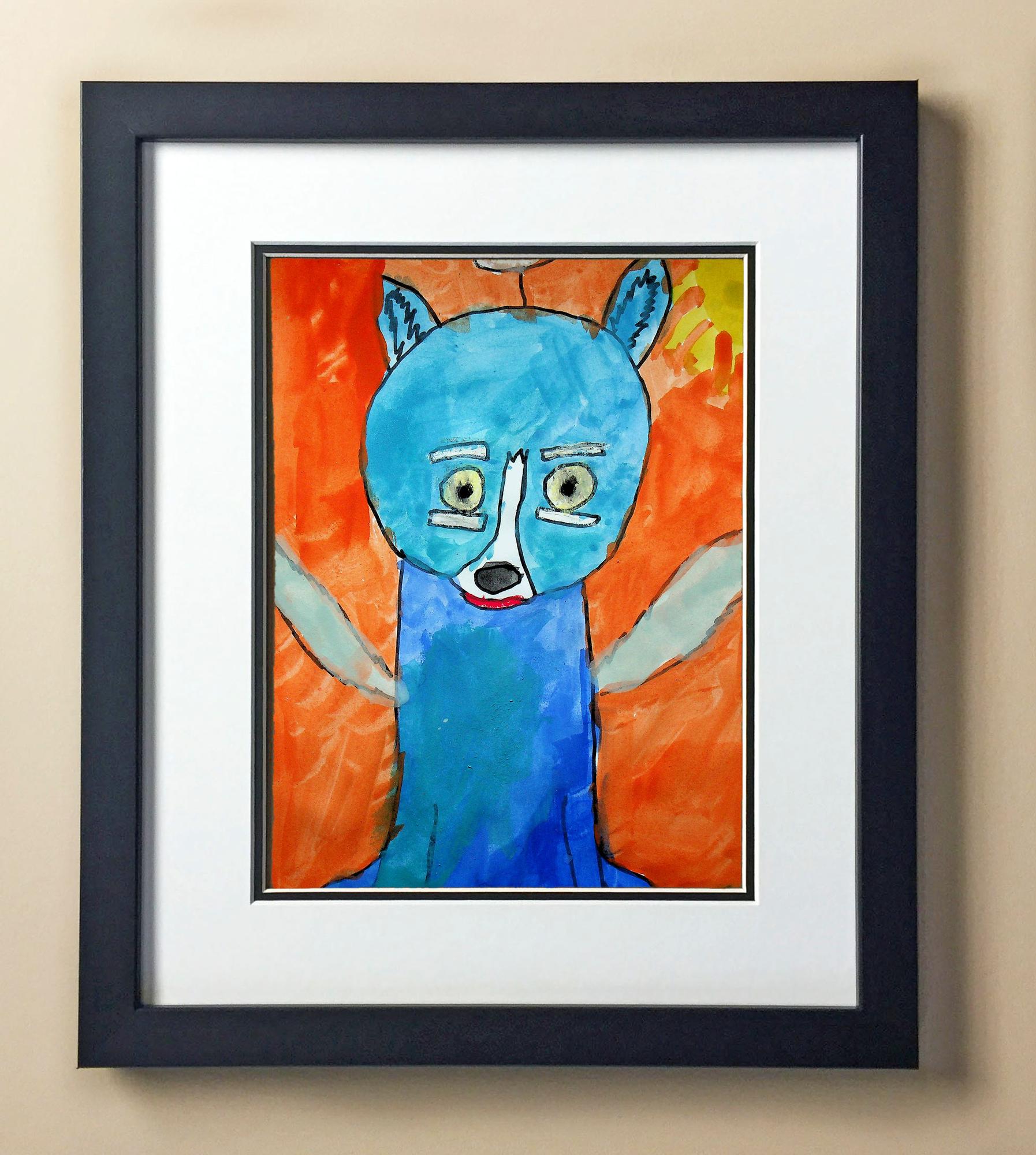 Included with the purchase is the Students Artwork, Frame, double matboard, shatter proof plexiglass, and a ready to hang backerboard with turnbuttons