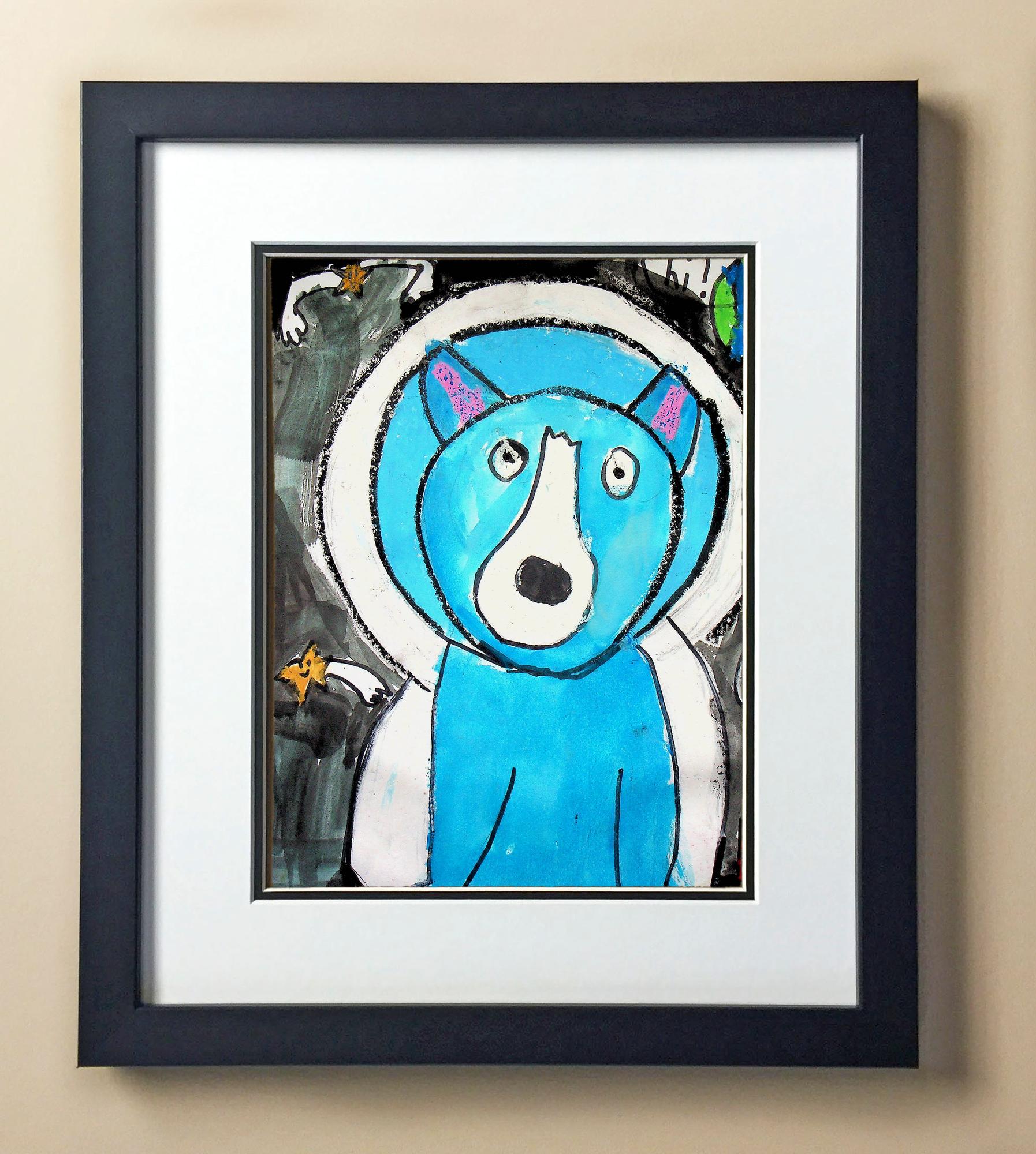 Included with the purchase is the Students Artwork, Frame, double matboard, shatter proof plexiglass, and a ready to hang backerboard with turnbuttons