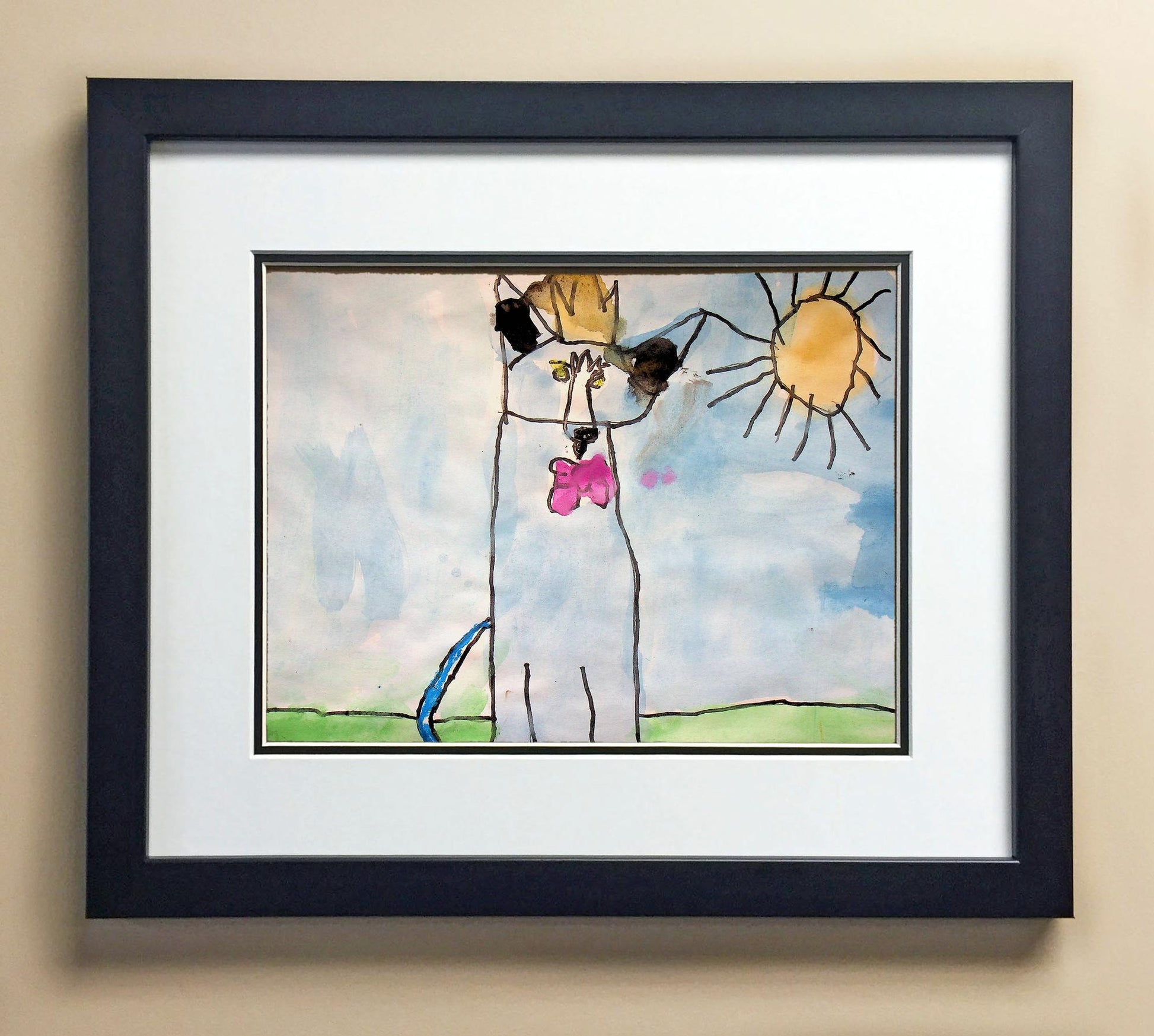 Included with the purchase is the Students Artwork, Frame, double matboard, shatter proof plexiglass, and a ready to hang backerboard with turnbuttons