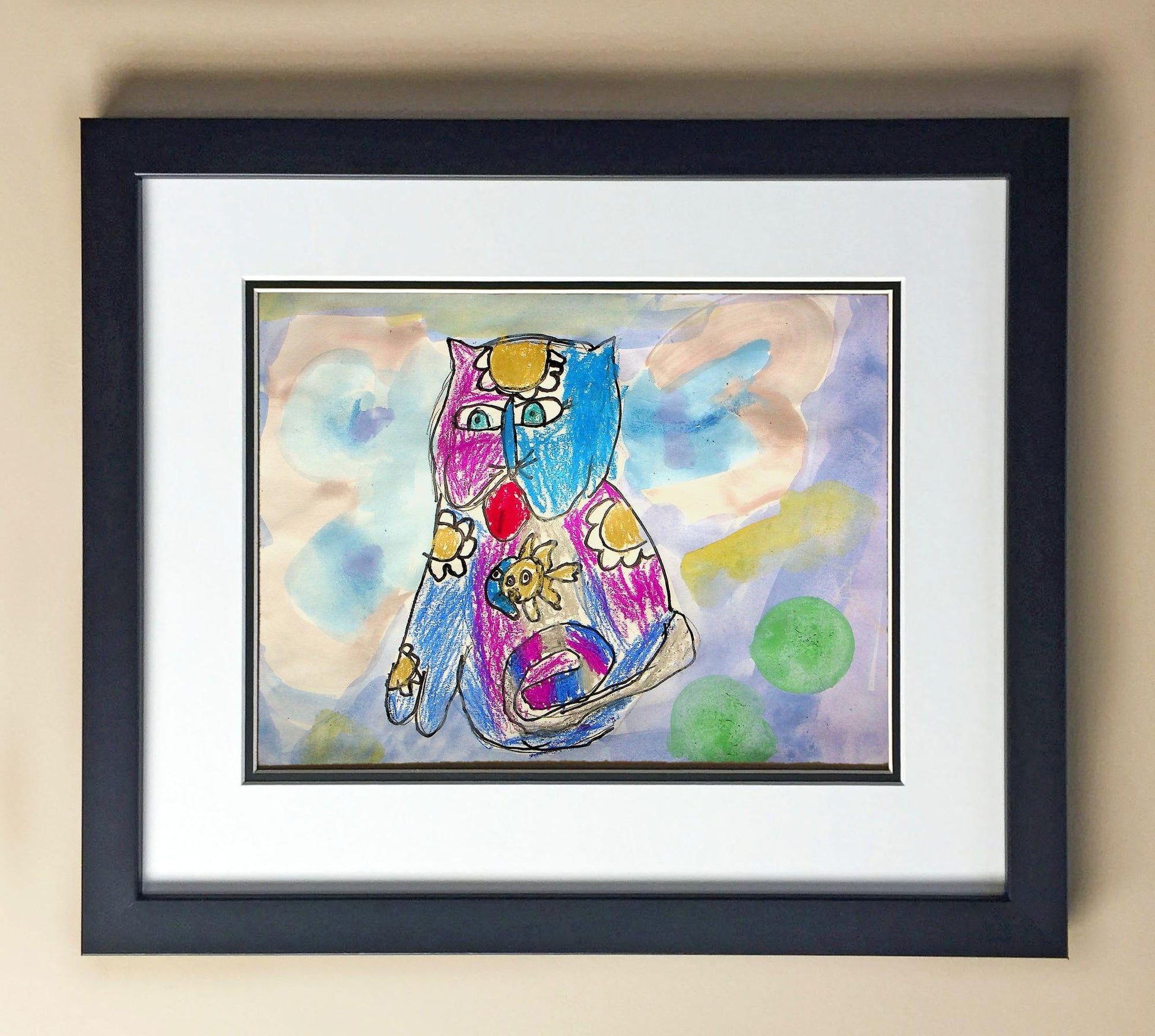 Included with the purchase is the Students Artwork, Frame, double matboard, shatter proof plexiglass, and a ready to hang backerboard with turnbuttons