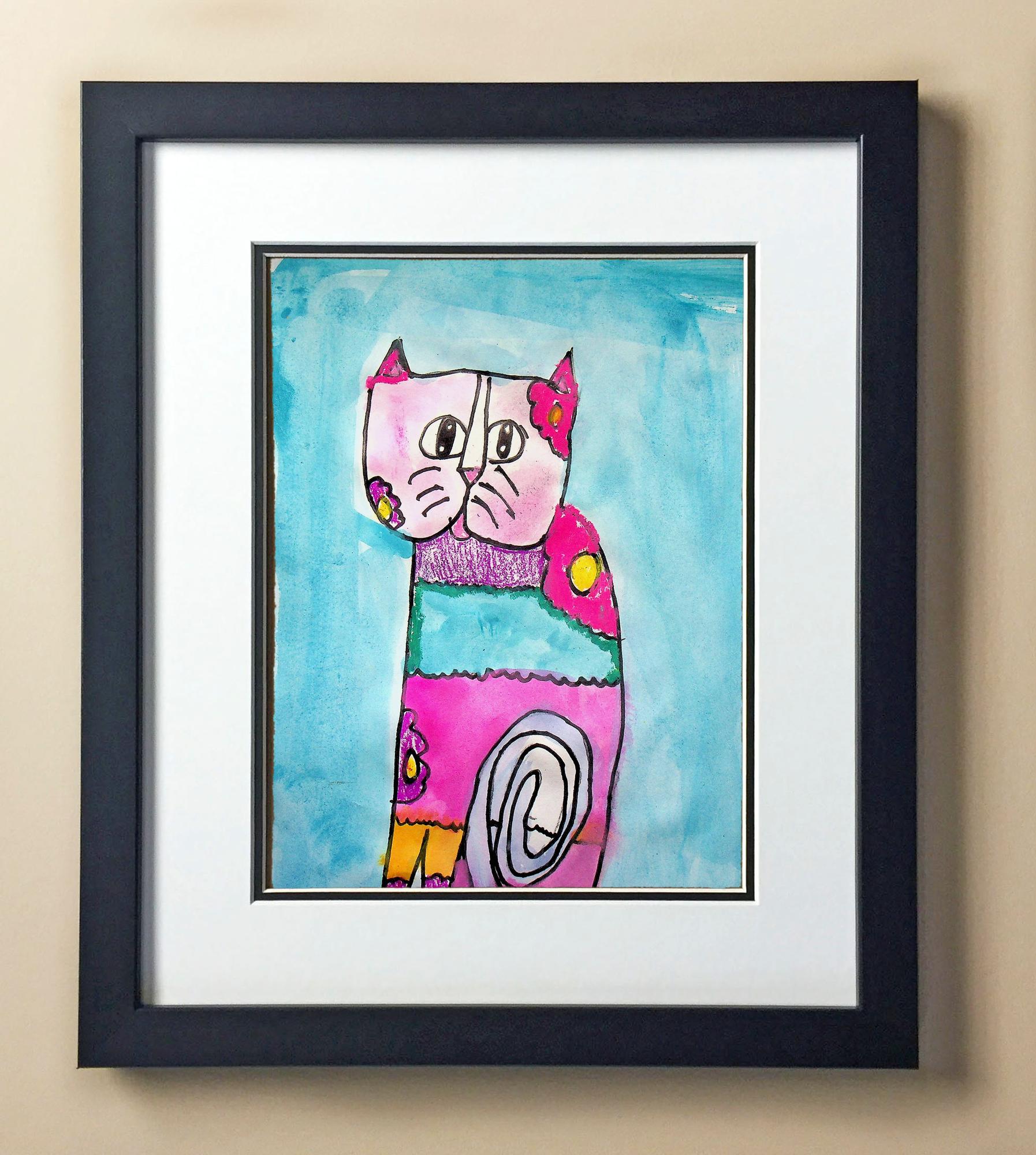 Included with the purchase is the Students Artwork, Frame, double matboard, shatter proof plexiglass, and a ready to hang backerboard with turnbuttons