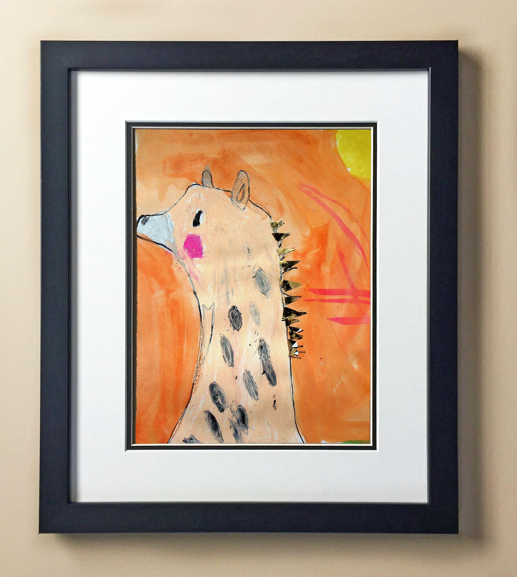 Included with the purchase is the Students Artwork, Frame, double matboard, shatter proof plexiglass, and a ready to hang backerboard with turnbuttons