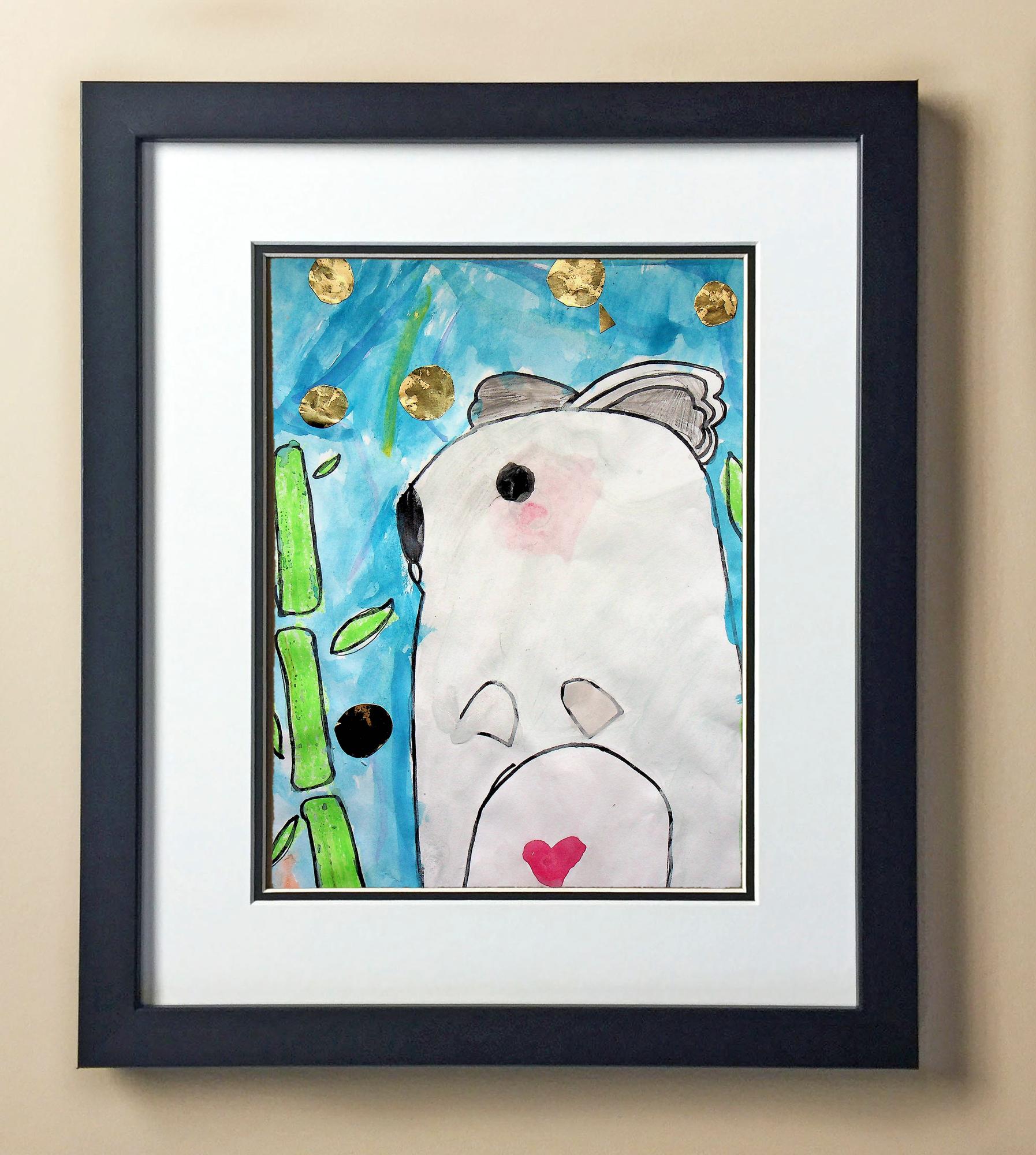 Included with the purchase is the Students Artwork, Frame, double matboard, shatter proof plexiglass, and a ready to hang backerboard with turnbuttons