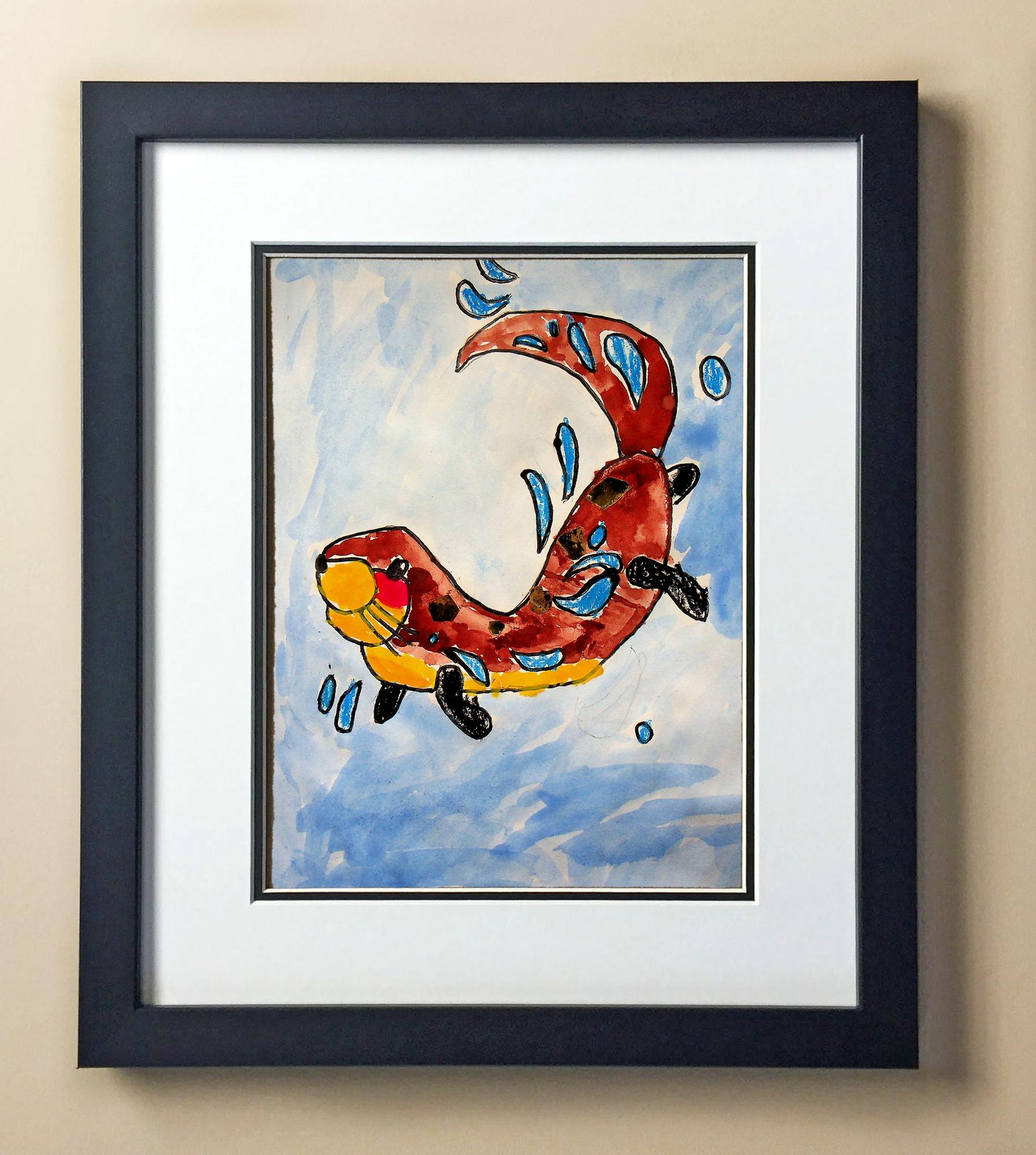 Included with the purchase is the Students Artwork, Frame, double matboard, shatter proof plexiglass, and a ready to hang backerboard with turnbuttons