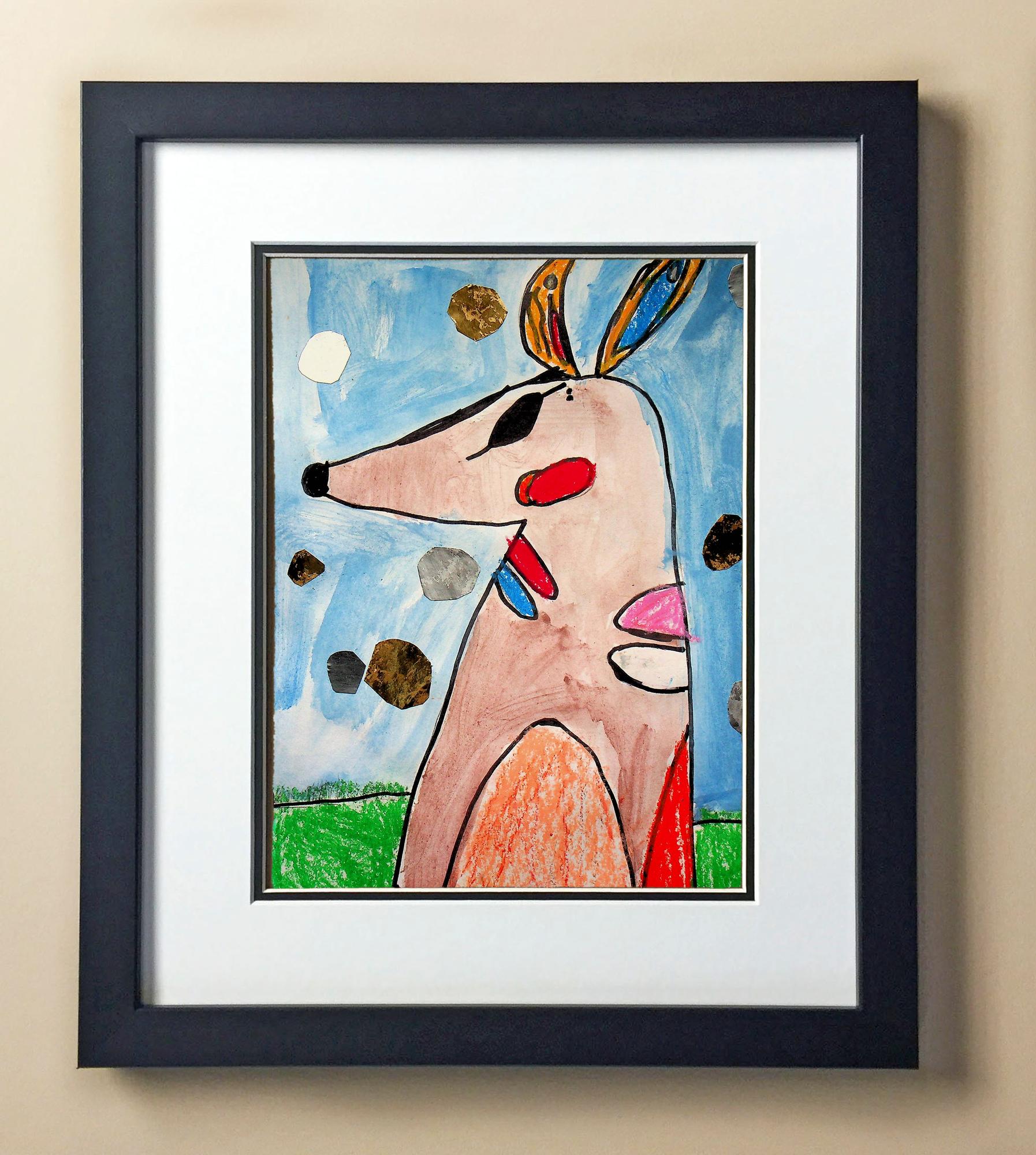 Included with the purchase is the Students Artwork, Frame, double matboard, shatter proof plexiglass, and a ready to hang backerboard with turnbuttons