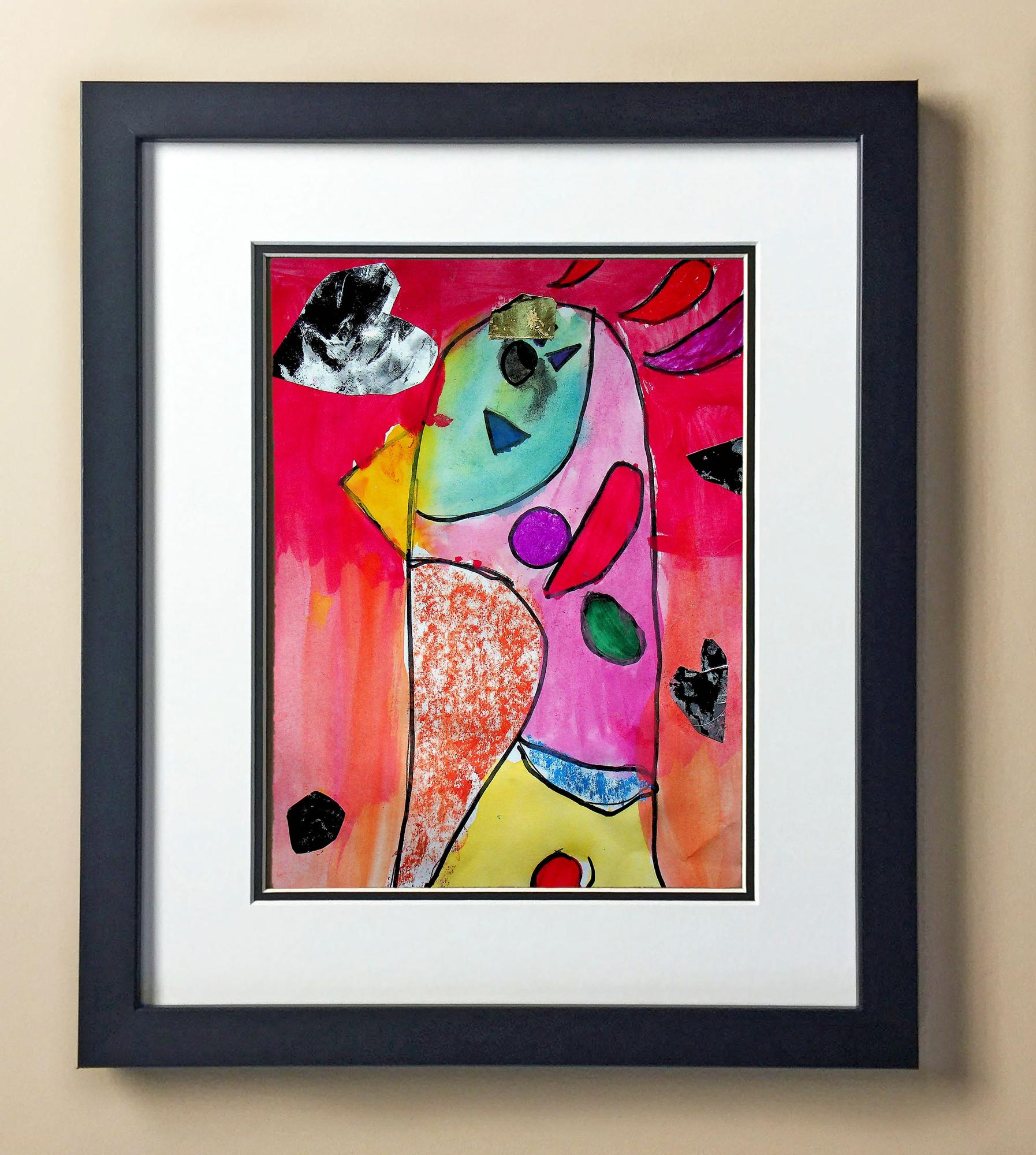 Included with the purchase is the Students Artwork, Frame, double matboard, shatter proof plexiglass, and a ready to hang backerboard with turnbuttons
