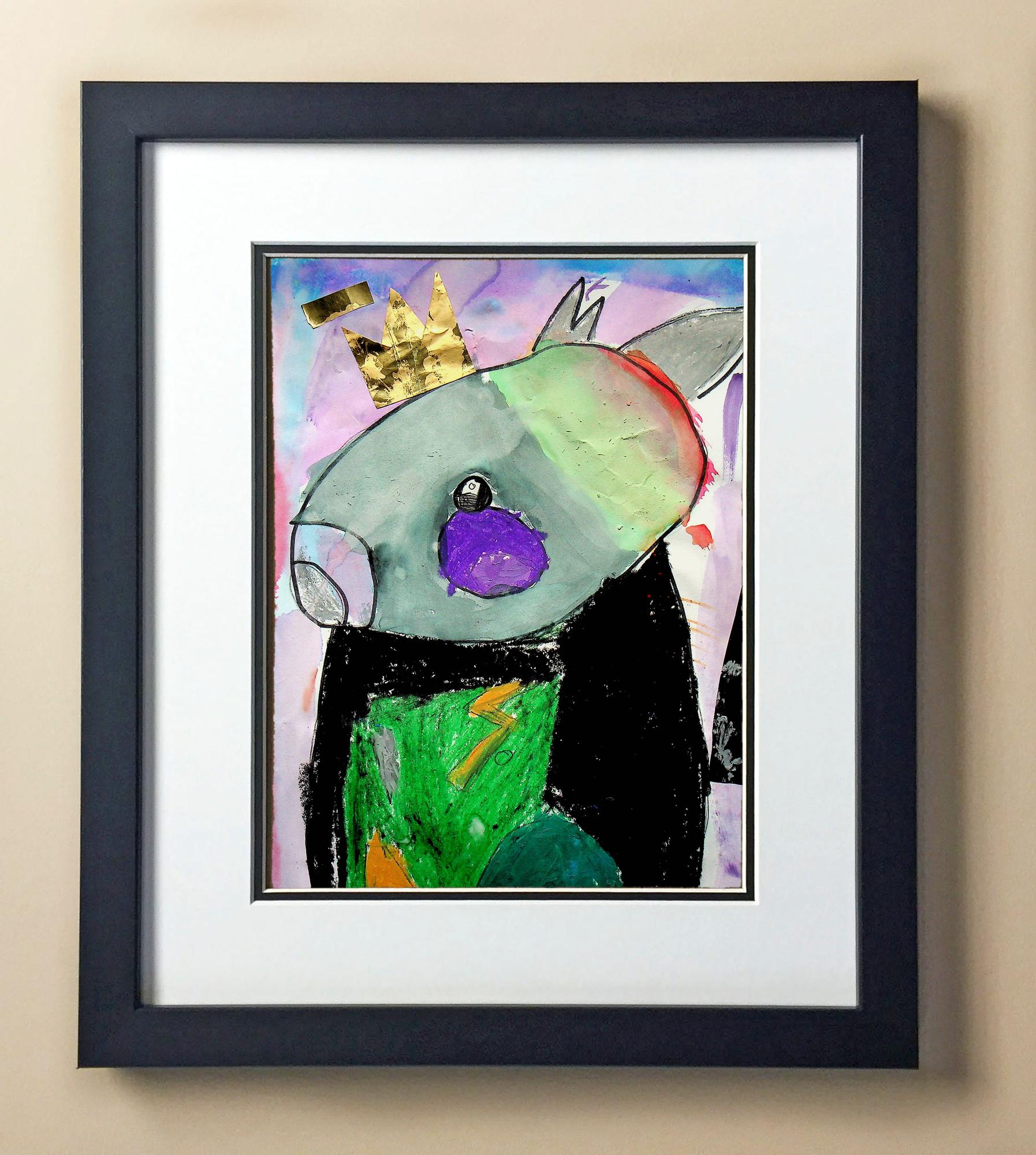 Included with the purchase is the Students Artwork, Frame, double matboard, shatter proof plexiglass, and a ready to hang backerboard with turnbuttons