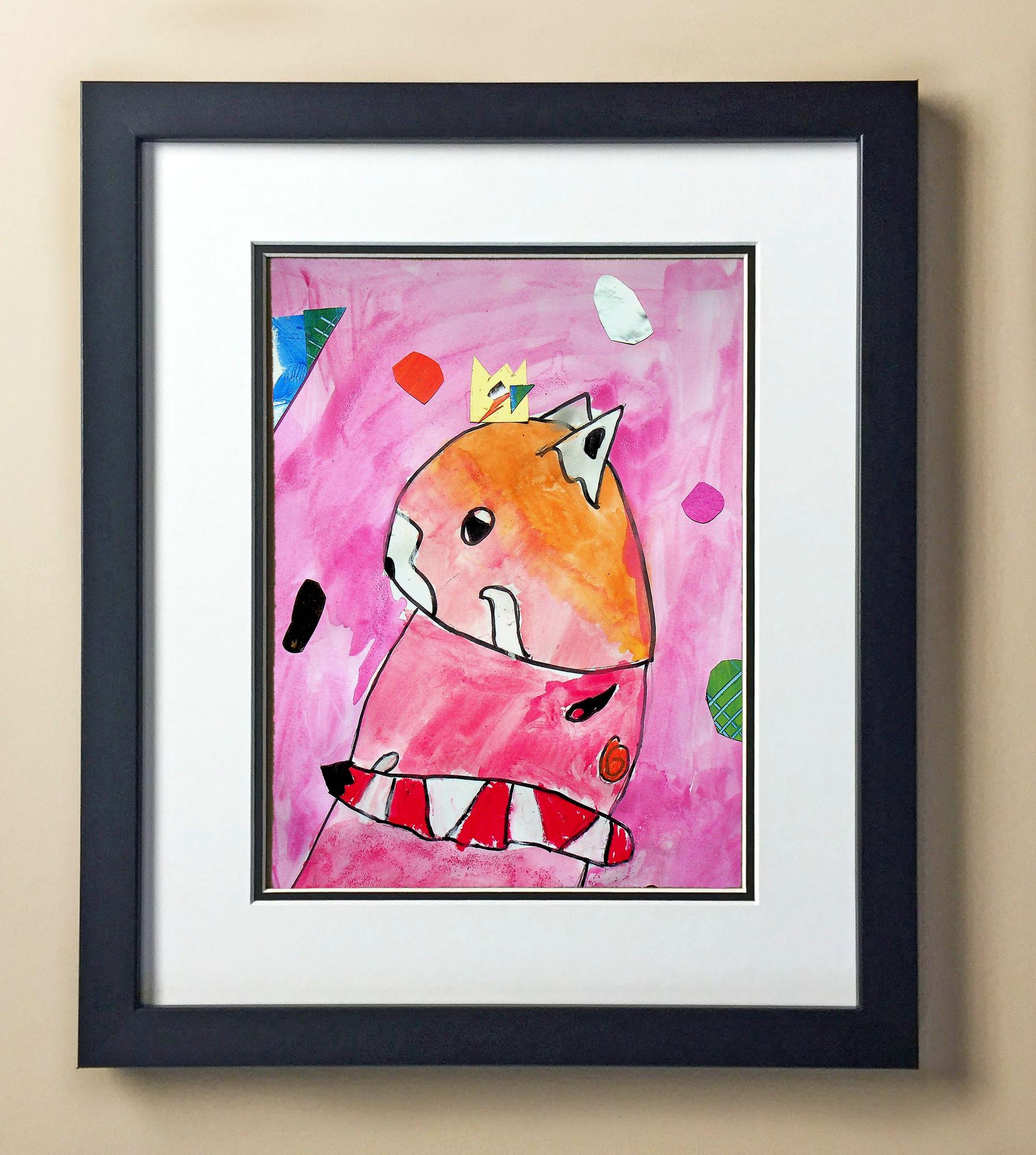 Included with the purchase is the Students Artwork, Frame, double matboard, shatter proof plexiglass, and a ready to hang backerboard with turnbuttons