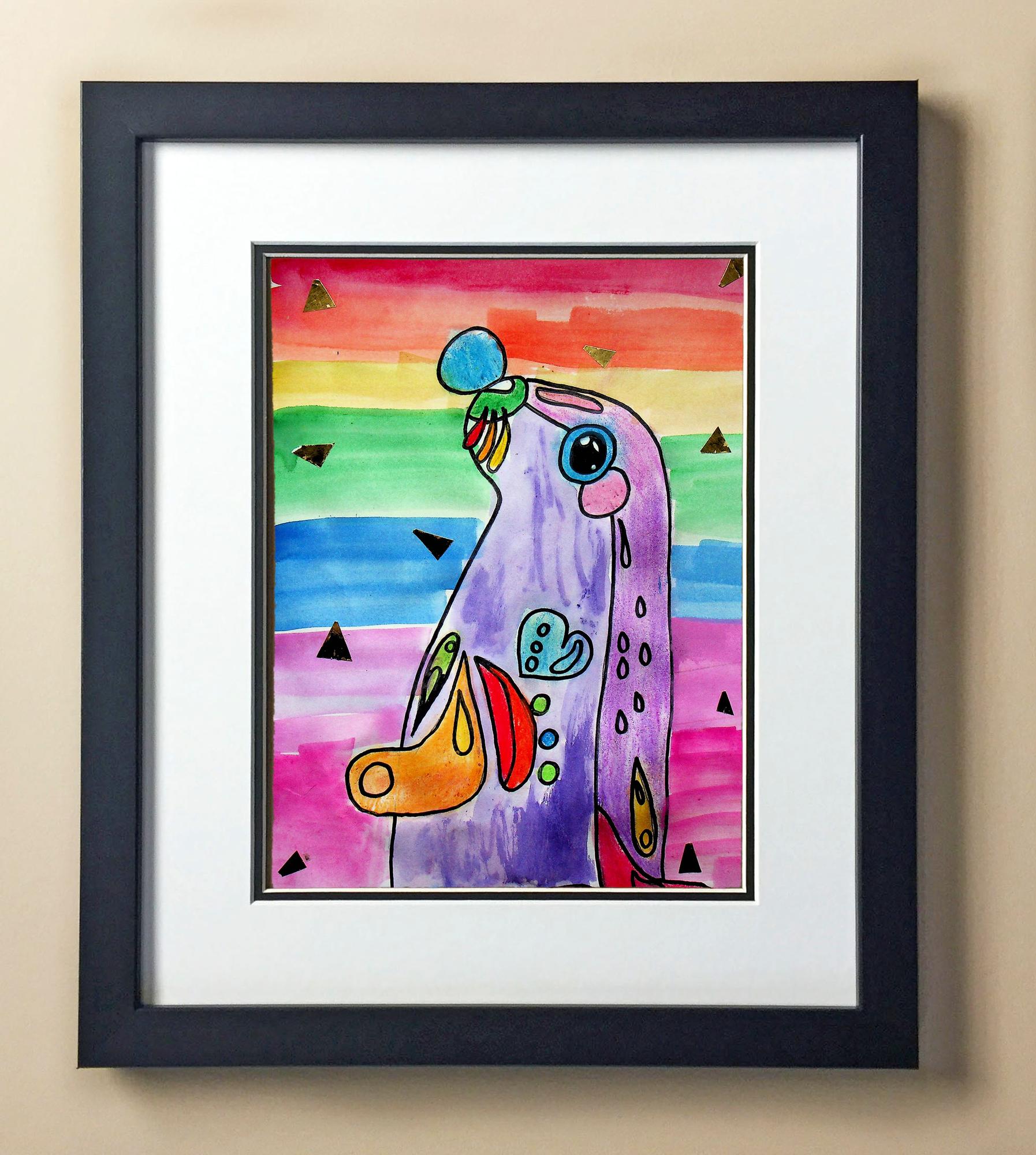 Included with the purchase is the Students Artwork, Frame, double matboard, shatter proof plexiglass, and a ready to hang backerboard with turnbuttons