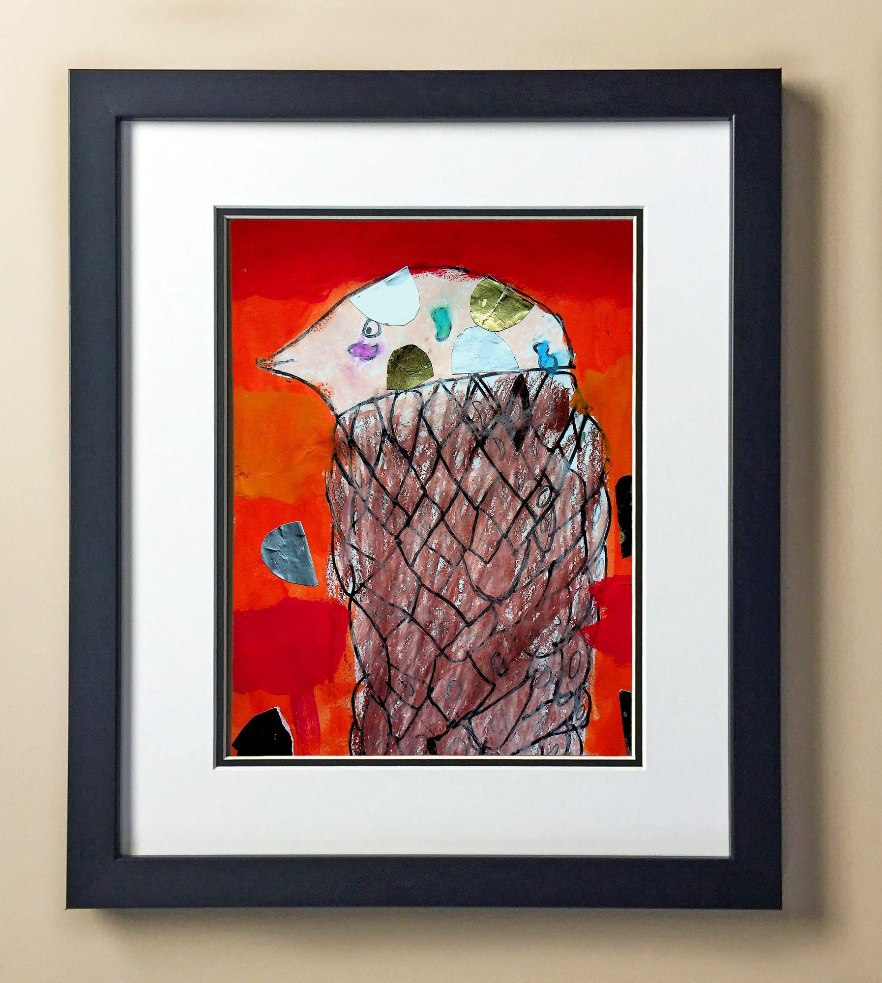 Included with the purchase is the Students Artwork, Frame, double matboard, shatter proof plexiglass, and a ready to hang backerboard with turnbuttons