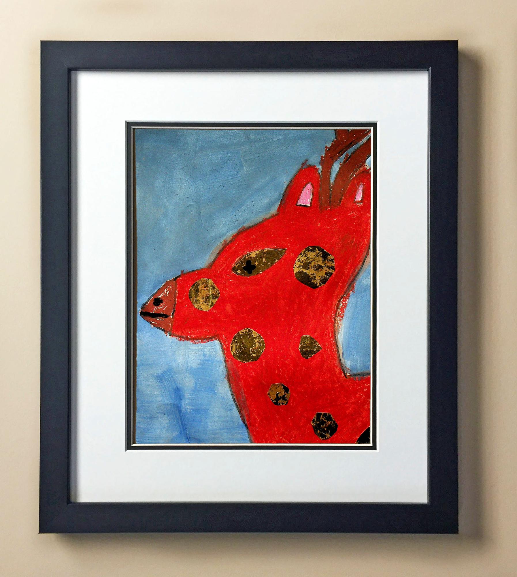 Included with the purchase is the Students Artwork, Frame, double matboard, shatter proof plexiglass, and a ready to hang backerboard with turnbuttons