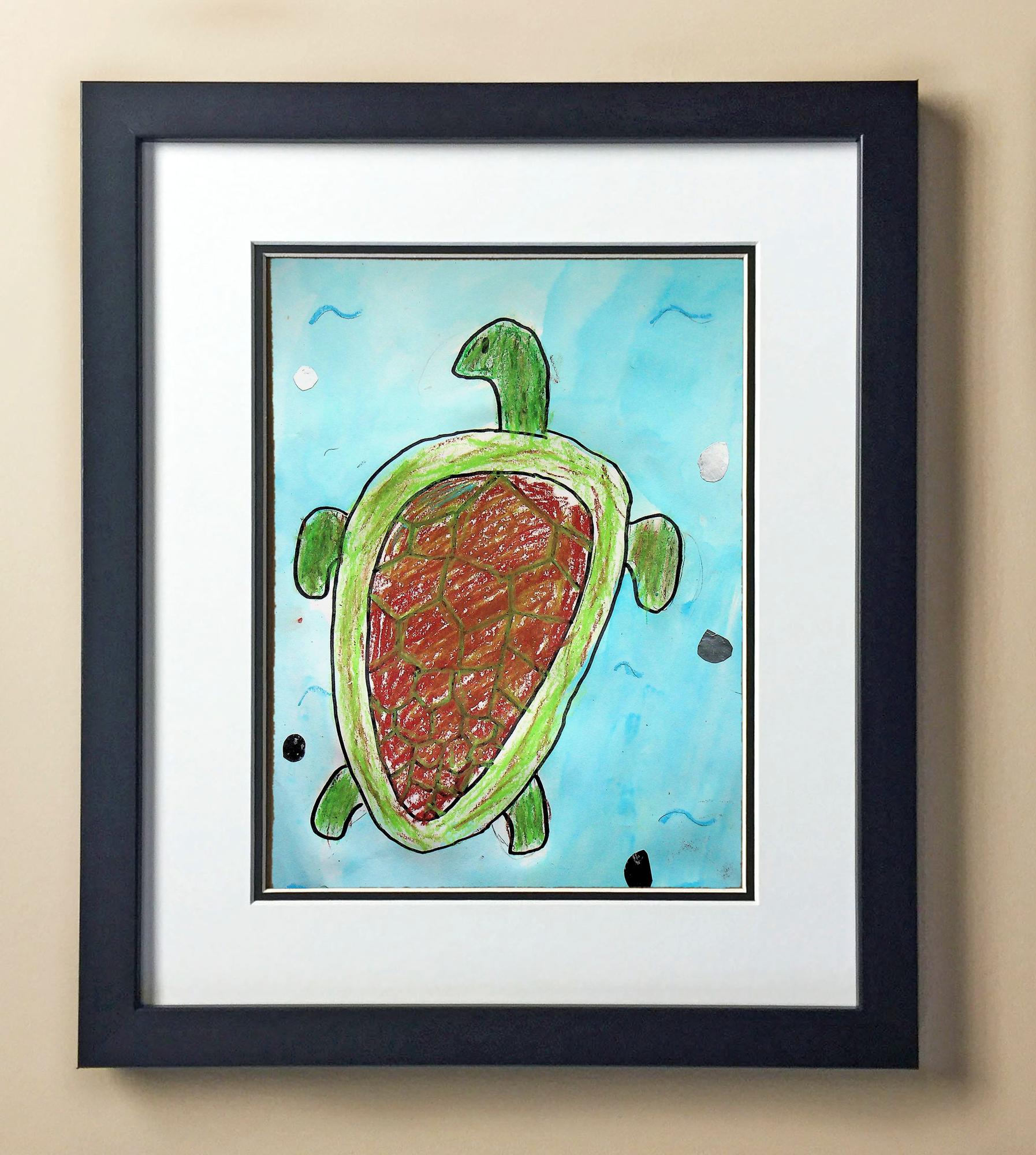 Included with the purchase is the Students Artwork, Frame, double matboard, shatter proof plexiglass, and a ready to hang backerboard with turnbuttons