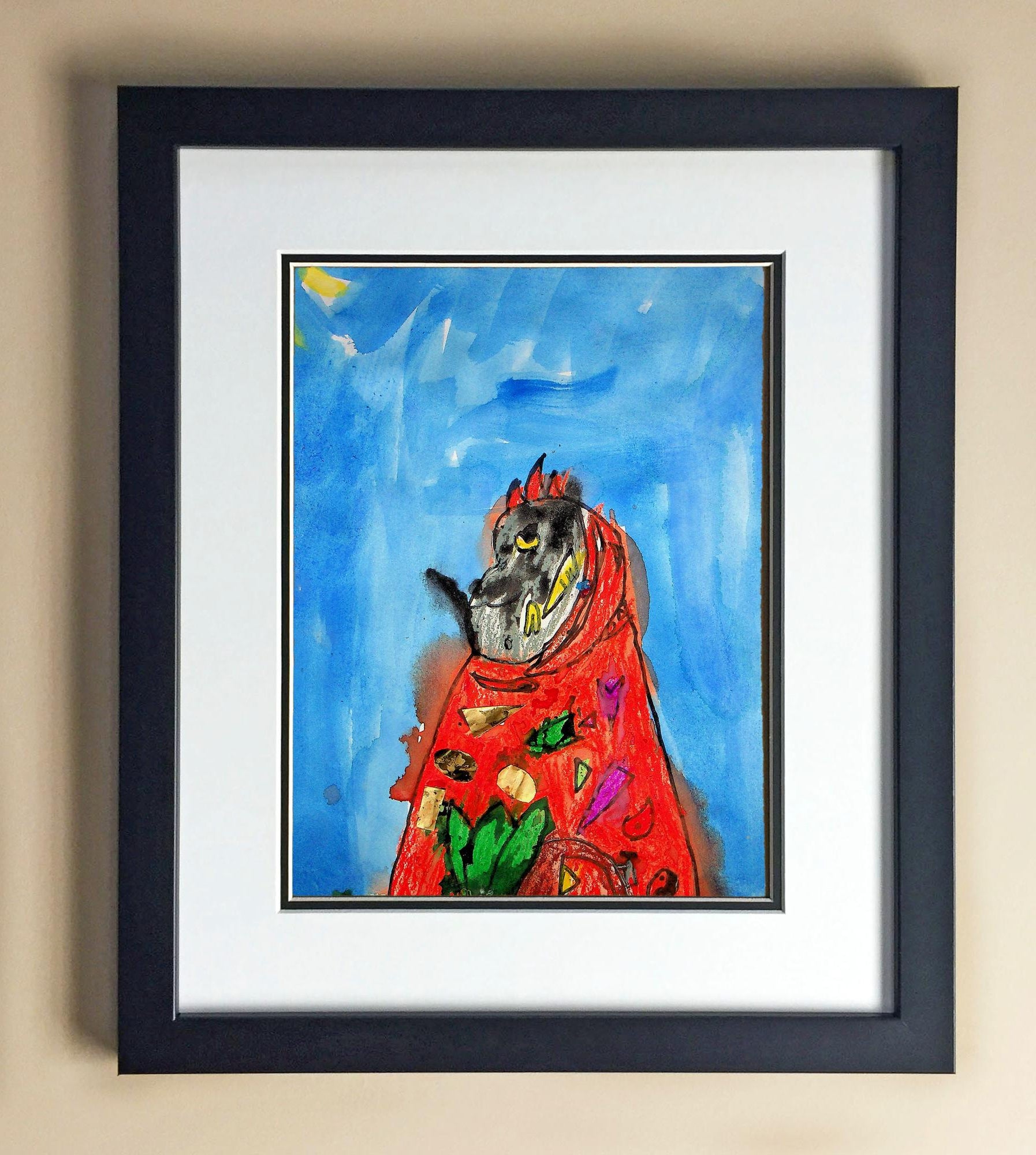 Included with the purchase is the Students Artwork, Frame, double matboard, shatter proof plexiglass, and a ready to hang backerboard with turnbuttons