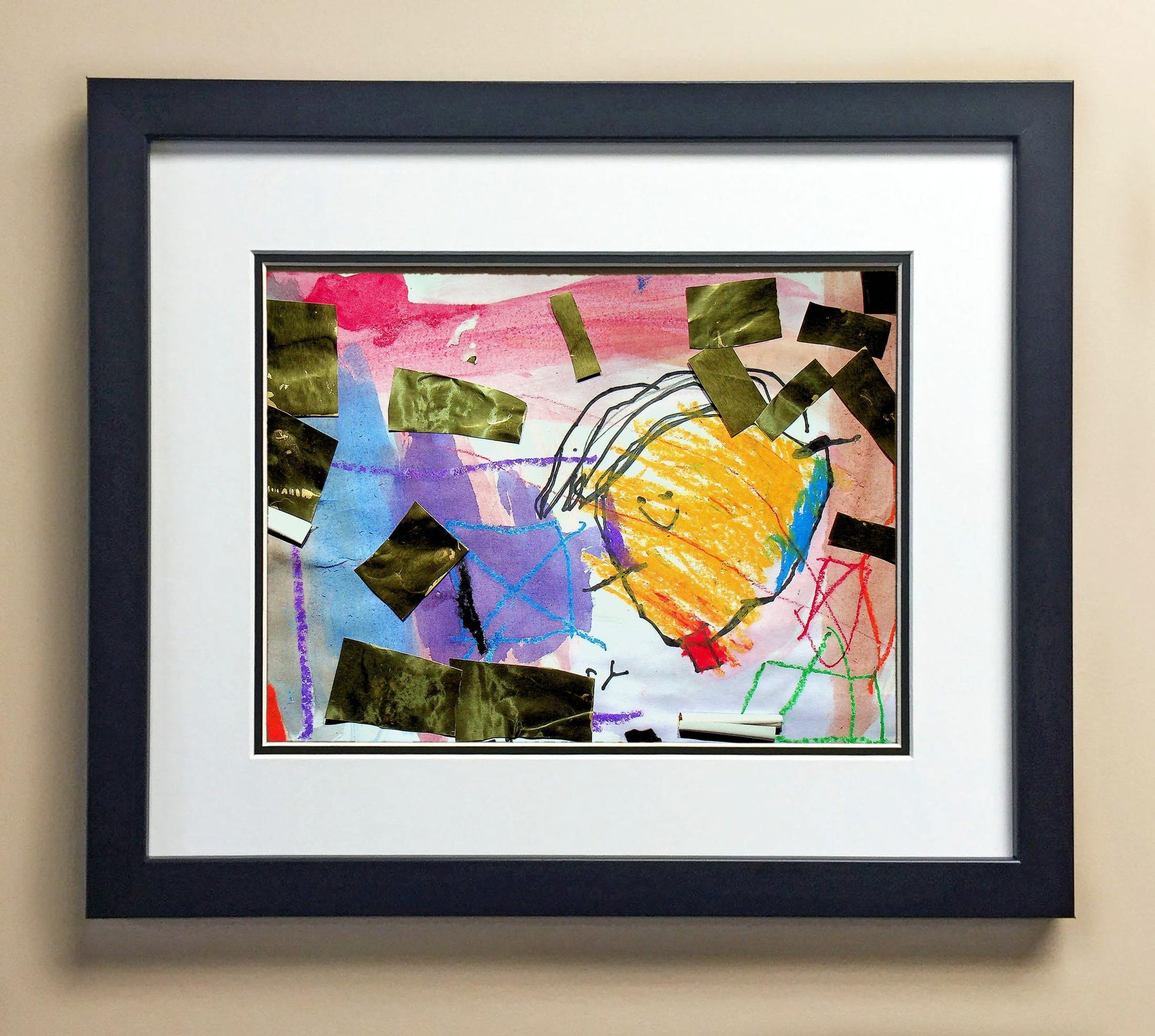Included with the purchase is the Students Artwork, Frame, double matboard, shatter proof plexiglass, and a ready to hang backerboard with turnbuttons