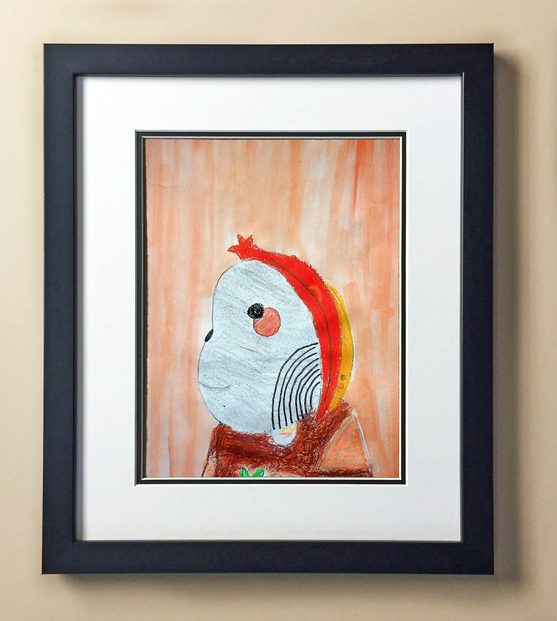 Included with the purchase is the Students Artwork, Frame, double matboard, shatter proof plexiglass, and a ready to hang backerboard with turnbuttons