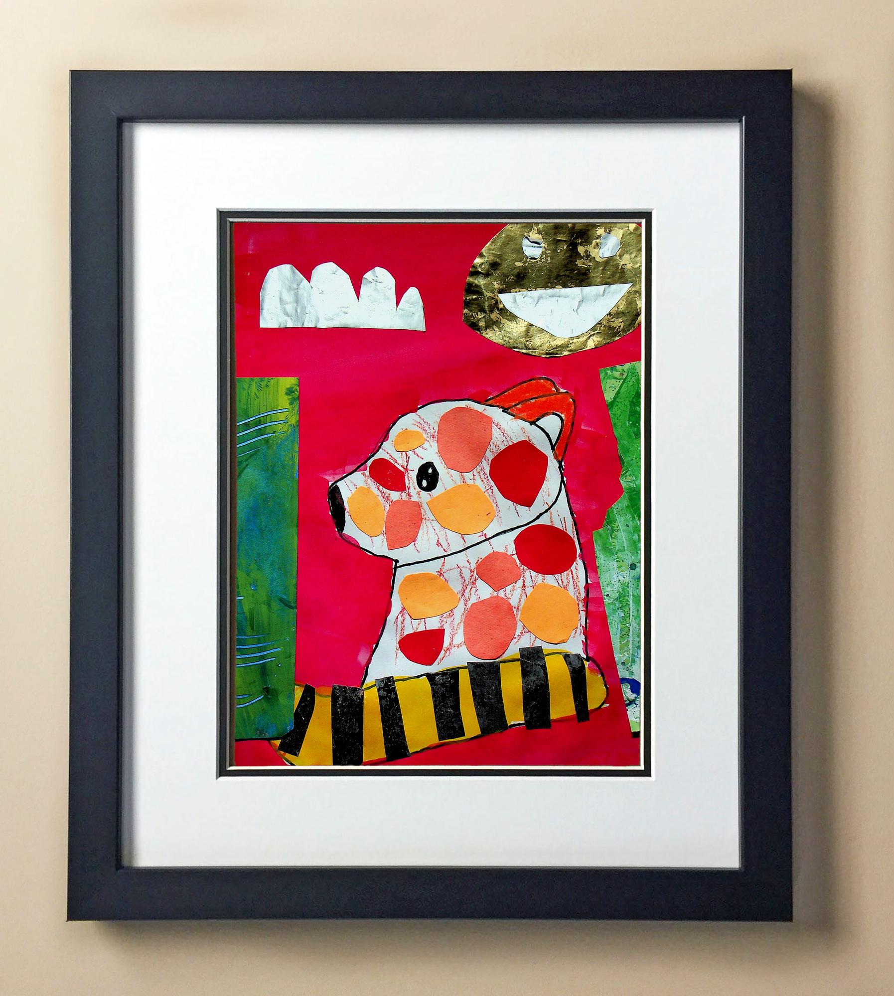 Included with the purchase is the Students Artwork, Frame, double matboard, shatter proof plexiglass, and a ready to hang backerboard with turnbuttons