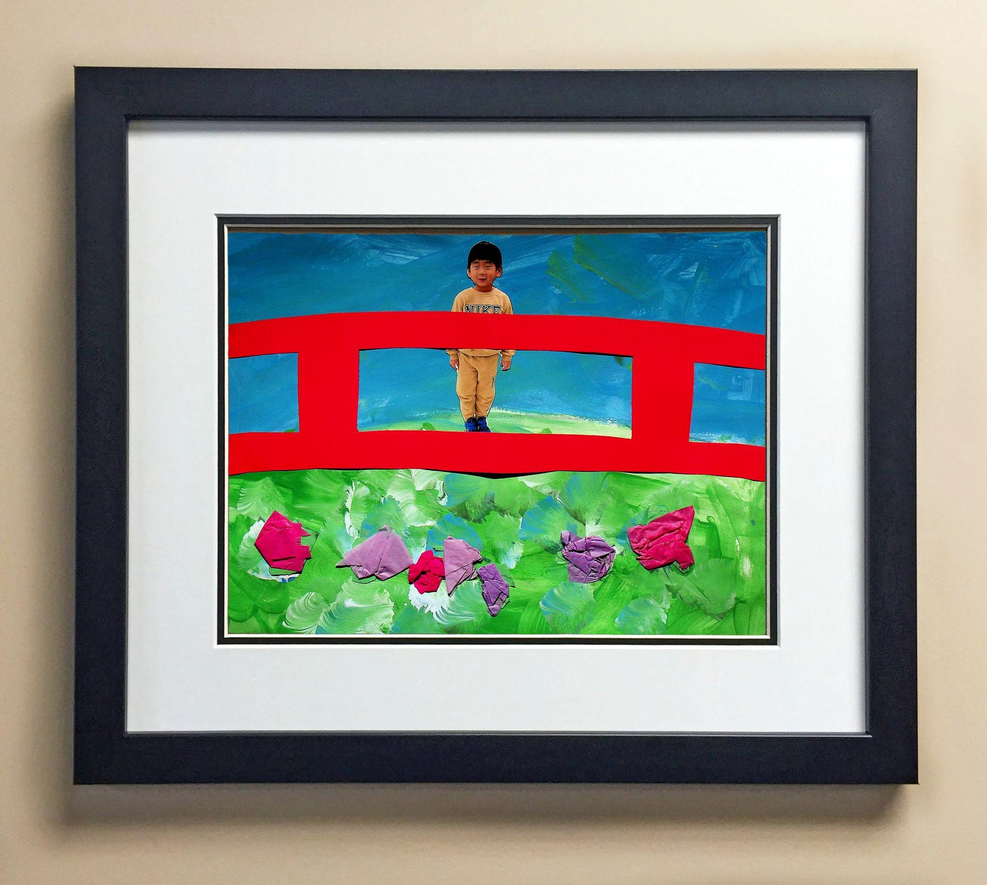 Included with the purchase is the Students Artwork, Frame, double matboard, shatter proof plexiglass, and a ready to hang backerboard with turnbuttons
